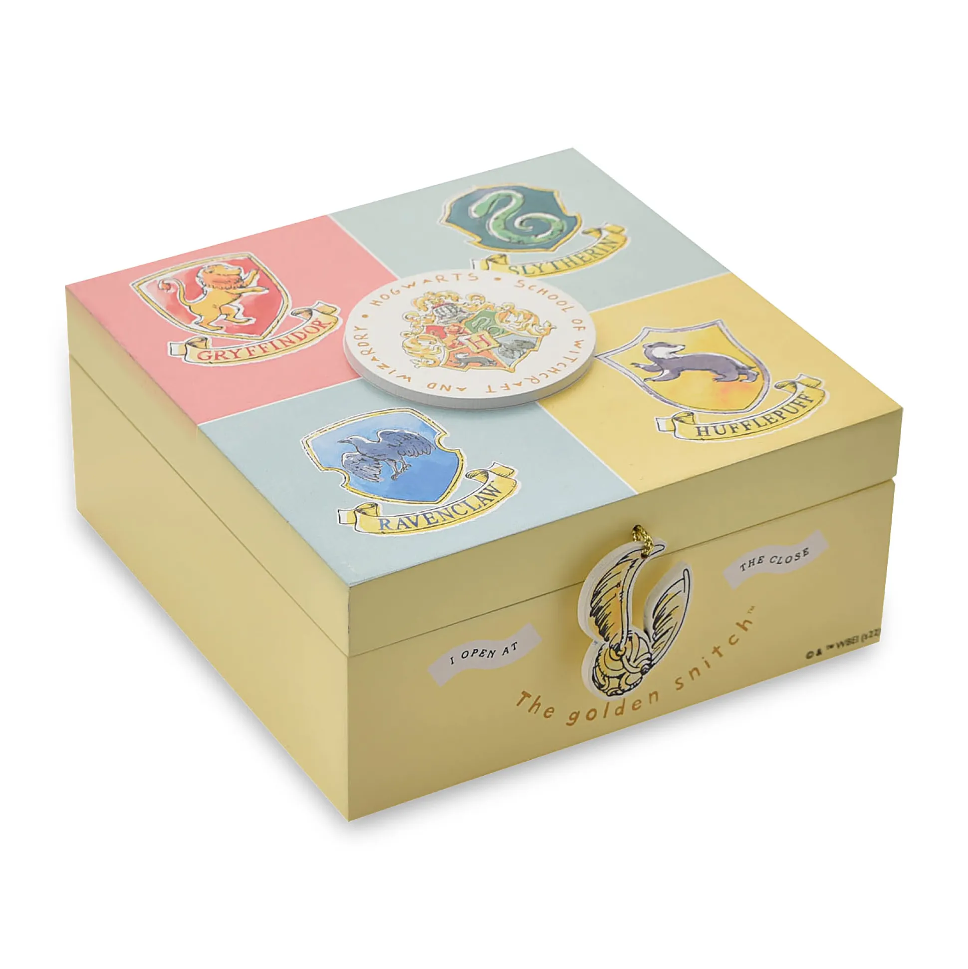 Jouw stukje Zweinstein voor thuis: deze officieel gelicentieerde Harry Potter opbergdoos van hout brengt het wapen van Zweinstein en de vier huiswapens in fraai reliëf zo je kast in. Kaartjes, sieraden, herinneringen – alles krijgt een ereplekje.