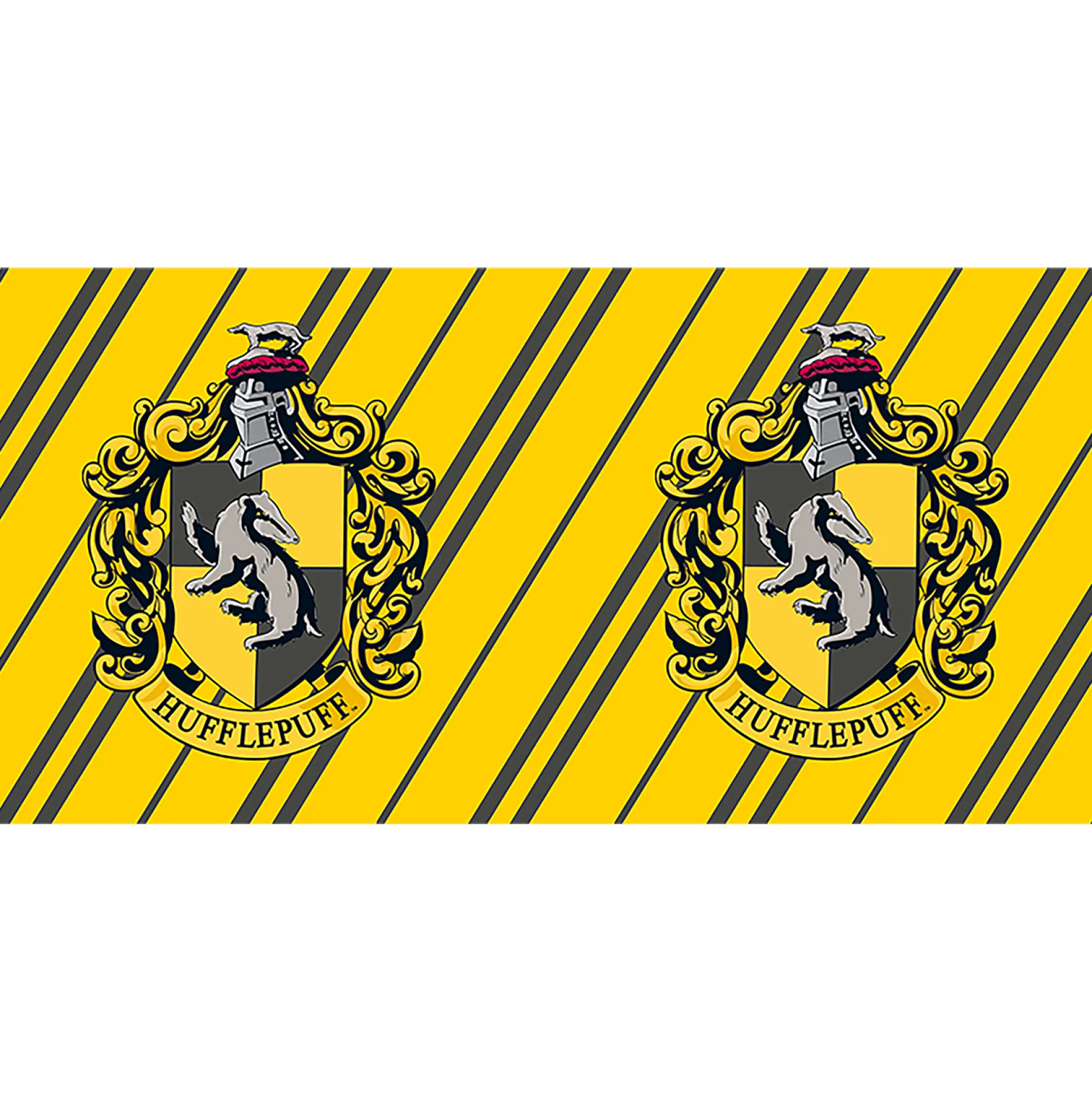 Eerlijk, tolerant en loyaal, deze eigenschappen worden toegeschreven aan studenten van Huffelpuf. Daarom symboliseert de das tegen een gele achtergrond deze karaktereigenschappen.