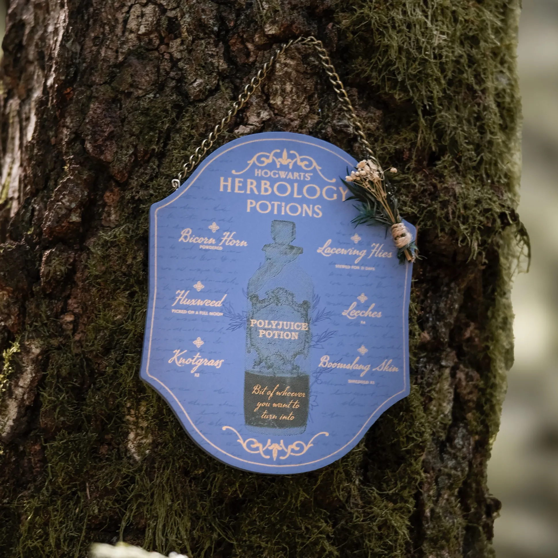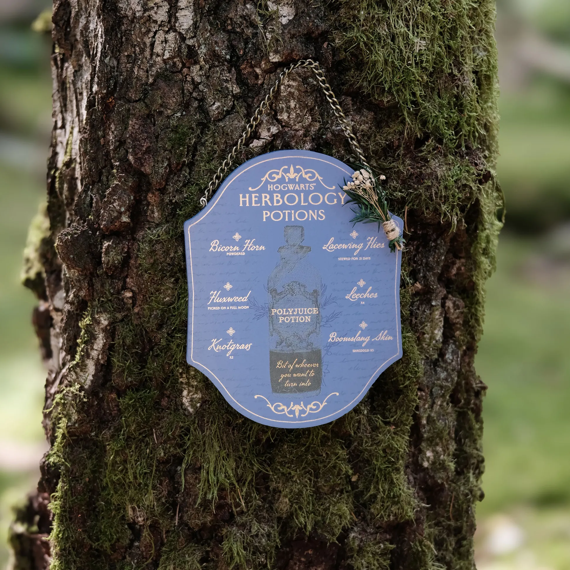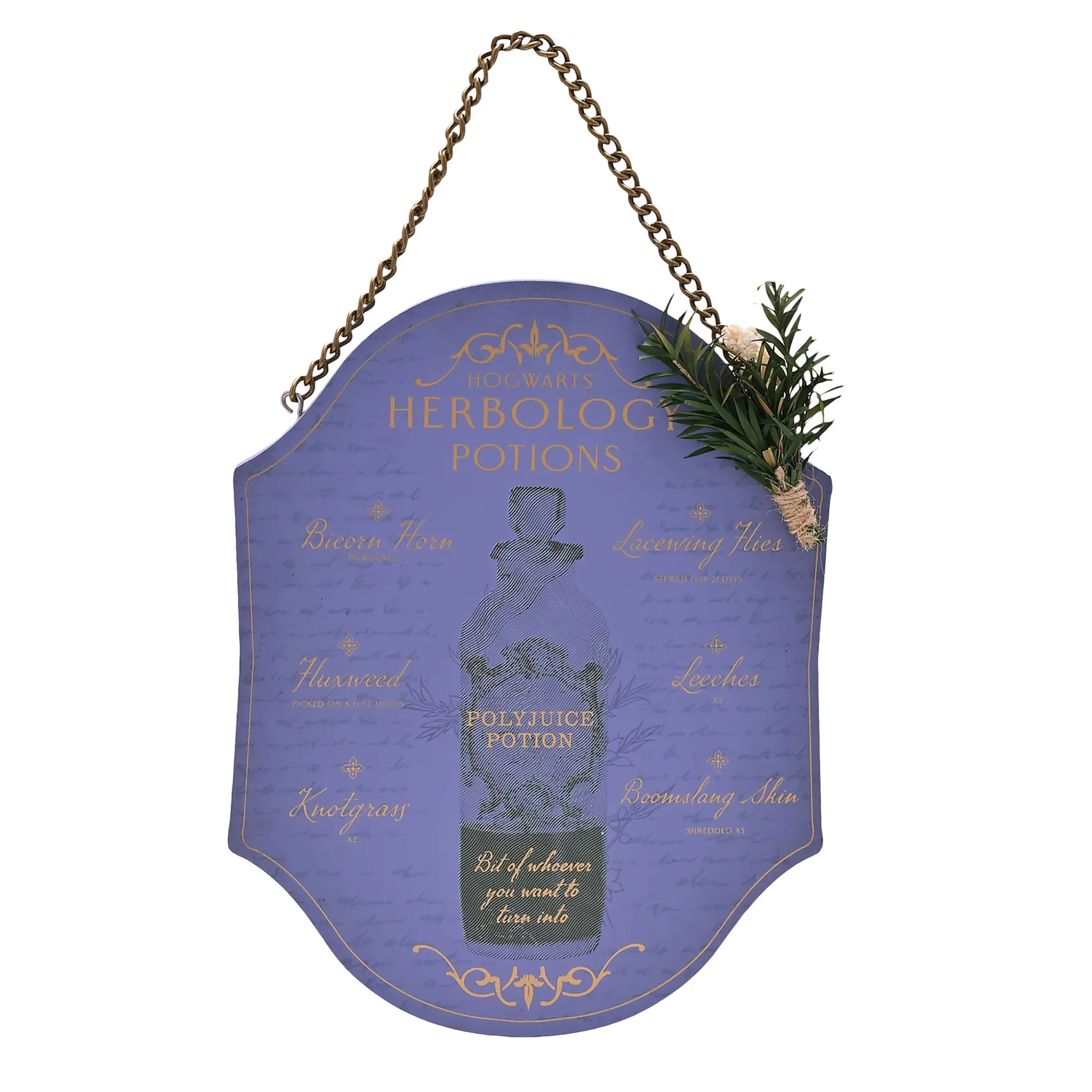 Hoi daar, Hogwarts-fan! Ben je op zoek naar een magische blikvanger voor aan je muur? Pak dan nu dit officieel gelicentieerde Harry Potter houten wandbord in het elegante “Kruidenkunde en Toverdranken”-ontwerp! Met zijn gedroogde bloemen en gouden letters brengt het een stukje tovenaarswereld direct naar jouw huis. Of je het nu ophangt in je toverdranklaboratorium (ook wel bekend als je keuken) of in je woonkamer – dit wandbord is een echte eyecatcher. Dankzij de handige metalen ketting hang je het super makkelijk op. En eerlijk, wie kan er nou een paarse creatie weerstaan die zo charmant aan Professor Stronk’s lessen doet denken? Afmetingen: 14 x 1 x 18 cm – klein maar krachtig. Haal nu een stukje Hogwarts-magie in huis en laat je gasten zien dat jouw decoratieskills net zo magisch zijn als Hermelien’s examenresultaten!