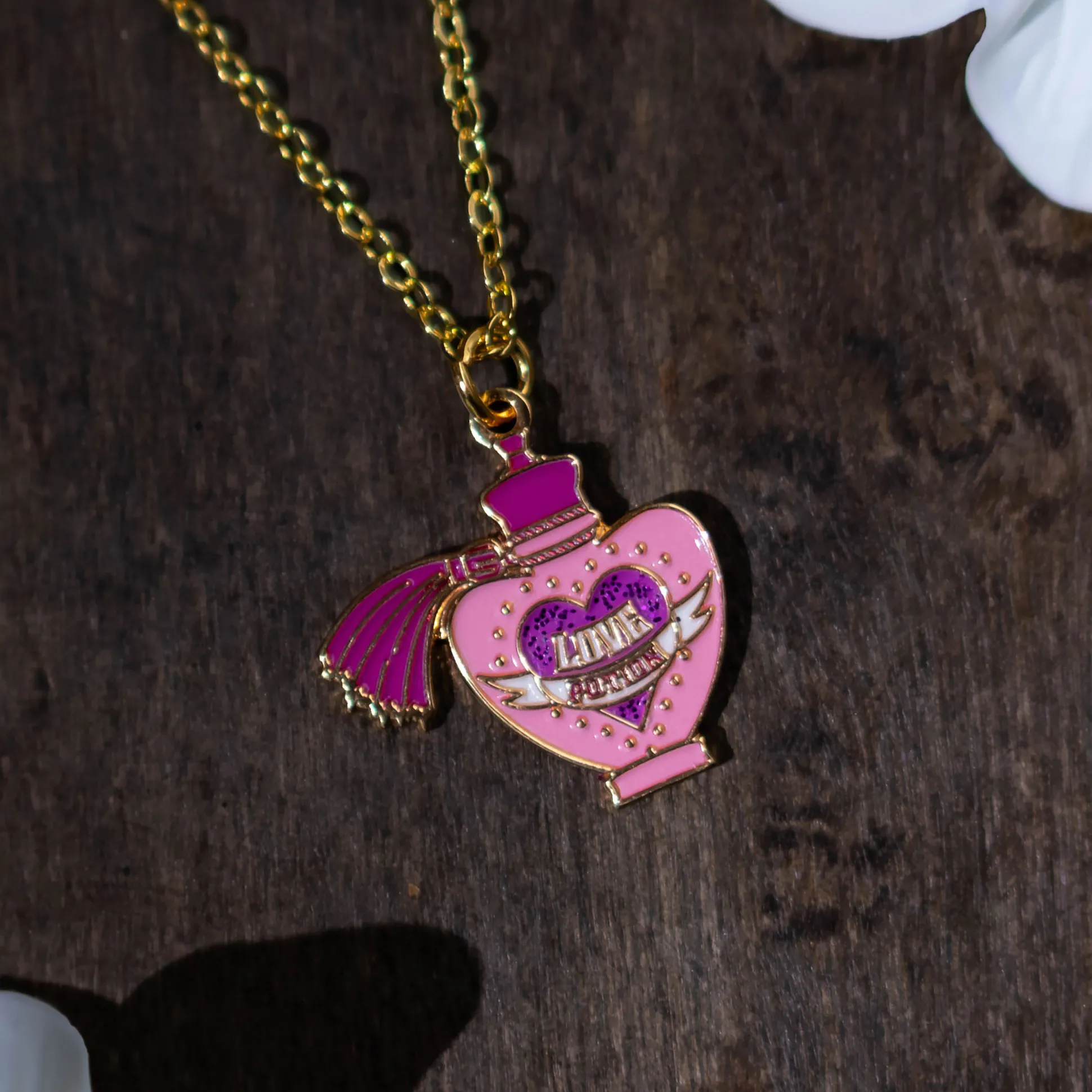 Of je ’m nu cadeau doet aan je favoriete persoon, je Hogwarts-crush of gewoon aan jezelf: deze Love Potion-ketting is het ideale fan-accessoire om elke outfit een vleugje magie (en een beetje drama) te geven.