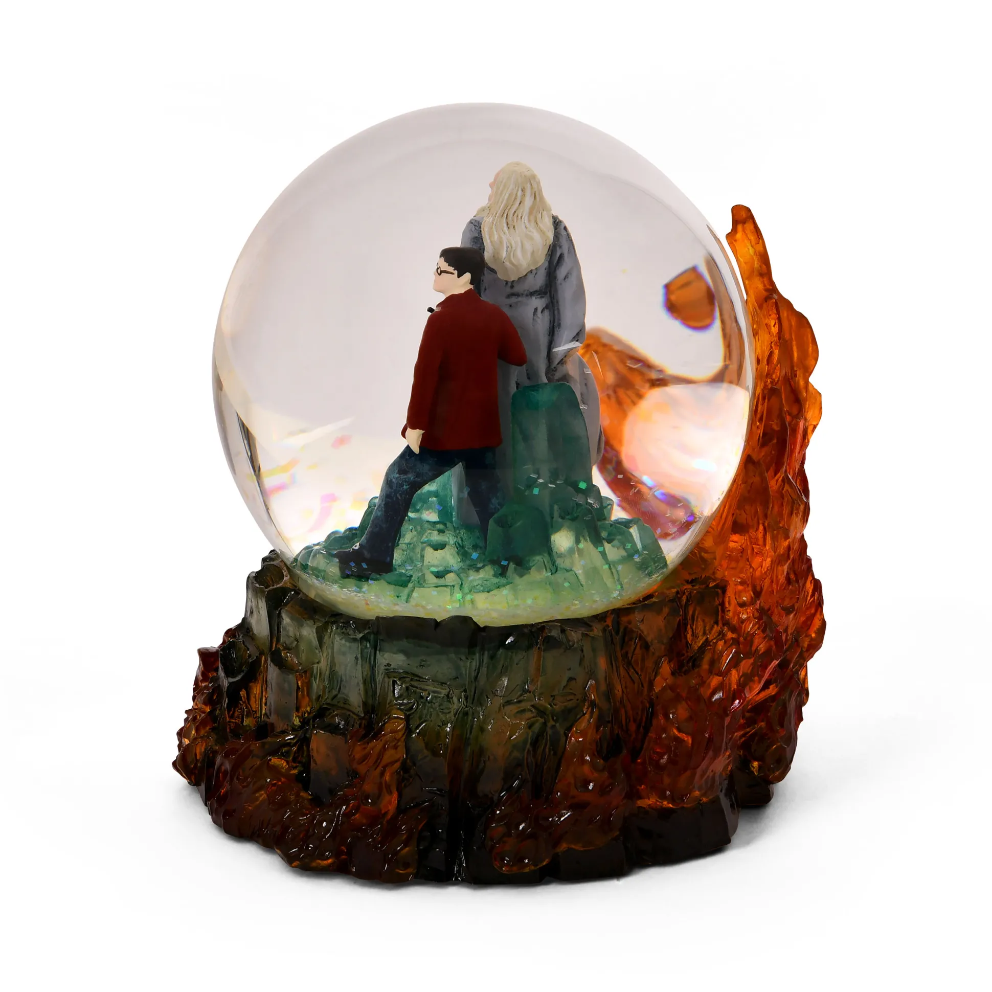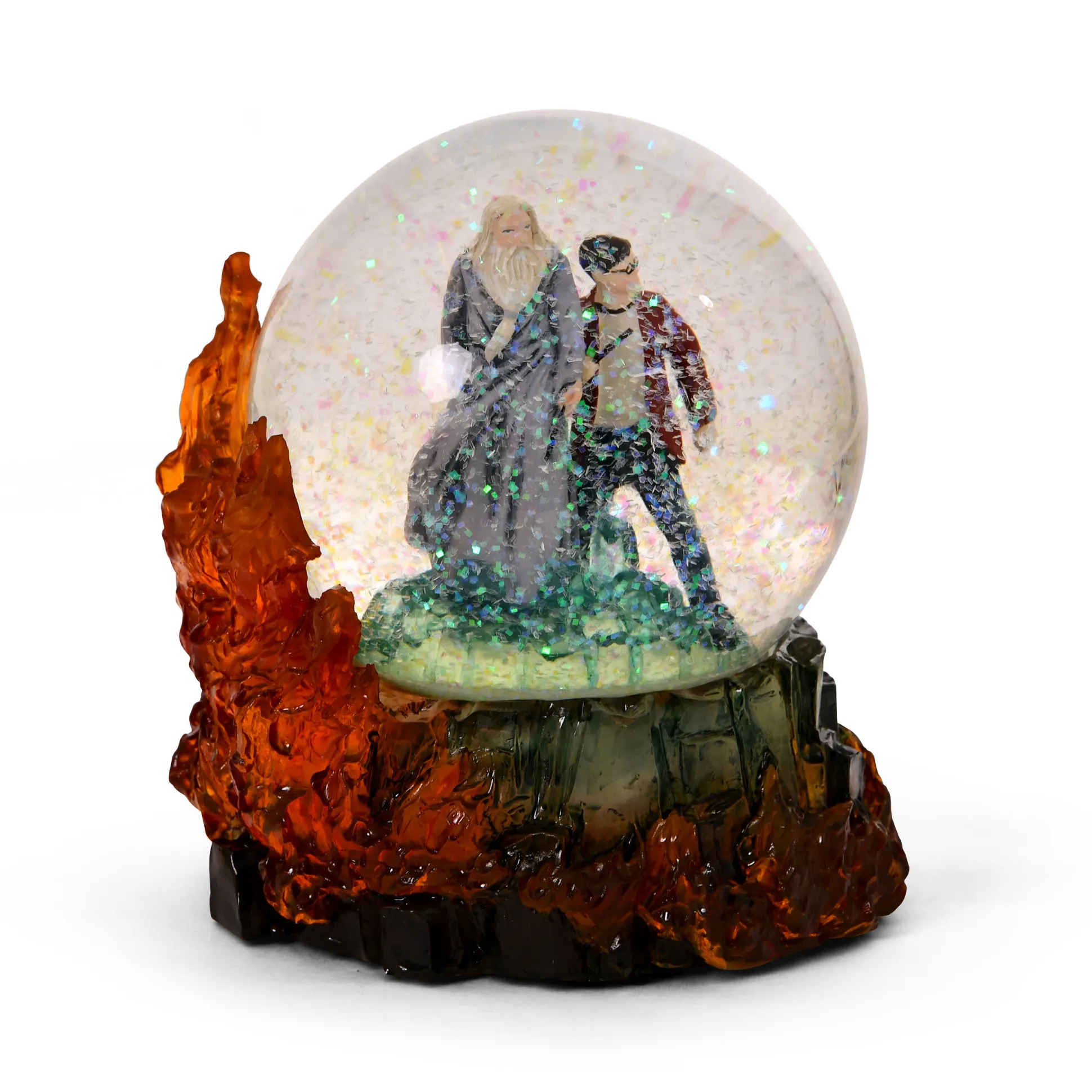 Geef ’m een zwiep en laat het sneeuwen in de tovenaarswereld: in deze officieel gelicentieerde sneeuwbol staan Harry en Albus Perkamentus zij aan zij terwijl glinsterende vlokken rondwervelen. De verhoogde basis toont een filmscène-design uit Harry Potter en de Halfbloed Prins, hoogwaardig uitgevoerd, tot in detail en volledig met de hand beschilderd. Kwaliteit die je ziet en voelt — geen Felix Felicis nodig. Op je bureau, op de plank of als Patronus tegen een slecht humeur: deze kleine dosis magie is het perfecte cadeau voor heksen, tovenaars en Dreuzels. Afmetingen: 10,5 x 13,5 x 12 cm.