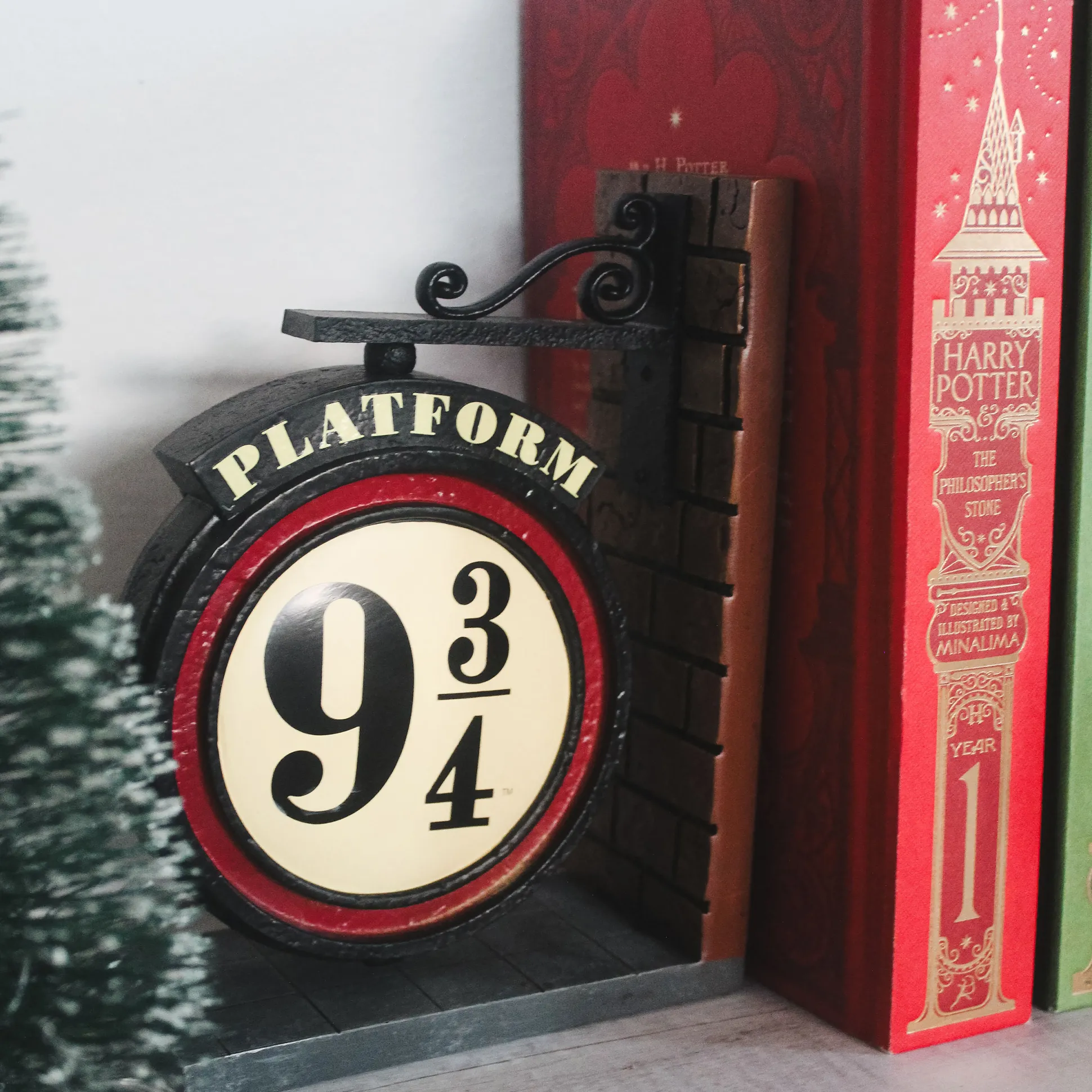 Instappen maar — zo je boekenkast in! Deze officieel gelicentieerde Harry Potter boekensteun in Perron 9¾-stijl parkeert je leesvoer veilig; geen sprintje door de muur nodig.