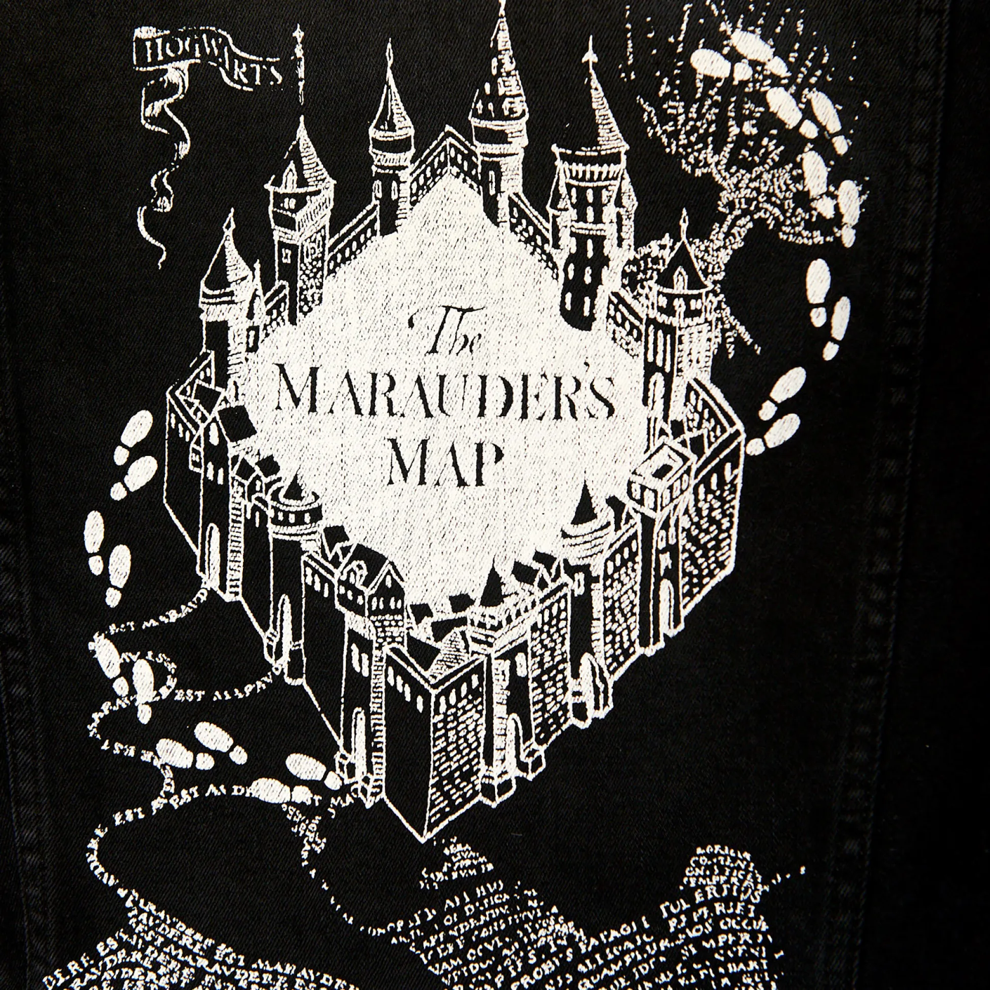 Magische mode voor Potterheads! Met dit officieel gelicentieerde Harry Potter dames spijkerjack ben jij klaar om de Gekke Maandag door Zweinstein te sluipen. De iconische Marauder’s Map print op de rug is zo gedetailleerd dat je bijna verwacht ineens op de Wisseldrank te stuiten. Aan de voorkant pronken het Zweinstein-wapen en mysterieuze voetstappen – sorry Dreuzels, alleen echte fans snappen het. Praktisch? Absoluut! Twee borstzakken en twee binnenzakken voor je toverstaf, Chocokikkers, of stiekem een beetje Boterbier. De ‘H’-knopen maken het helemaal af. Kleur: zwart. Level: Magistraal.
