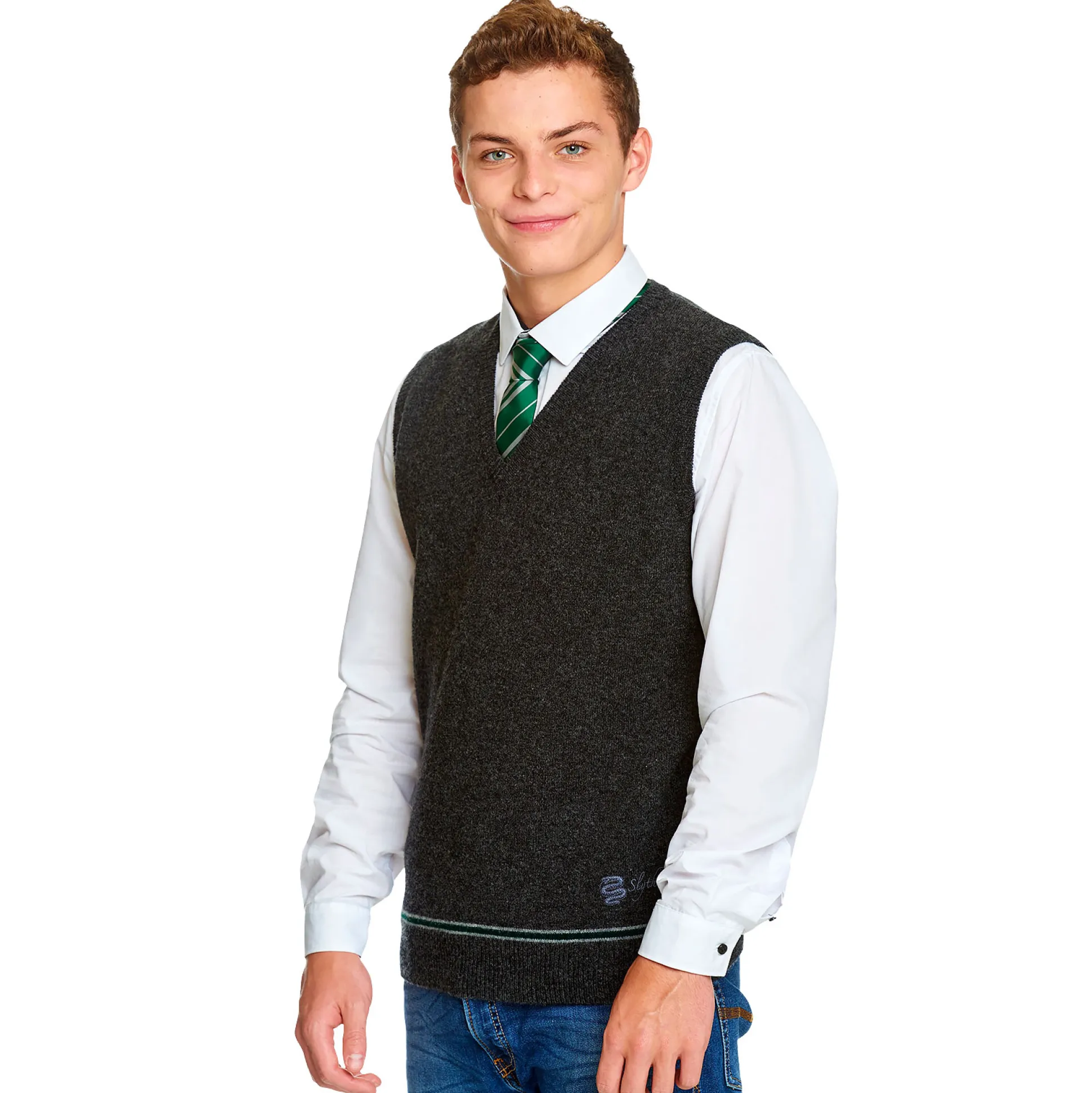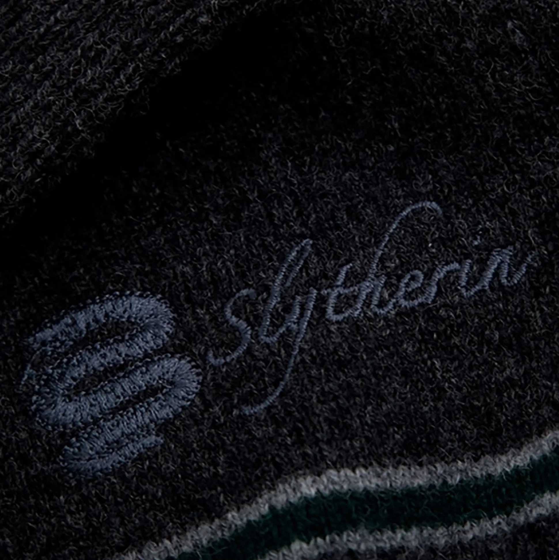 Het magische kledingstuk is gemaakt van pure lamswol en subtiel versierd met een decoratieve streep. Daarnaast is de trui versierd met het Slytherin wapen en de Slytherin belettering.