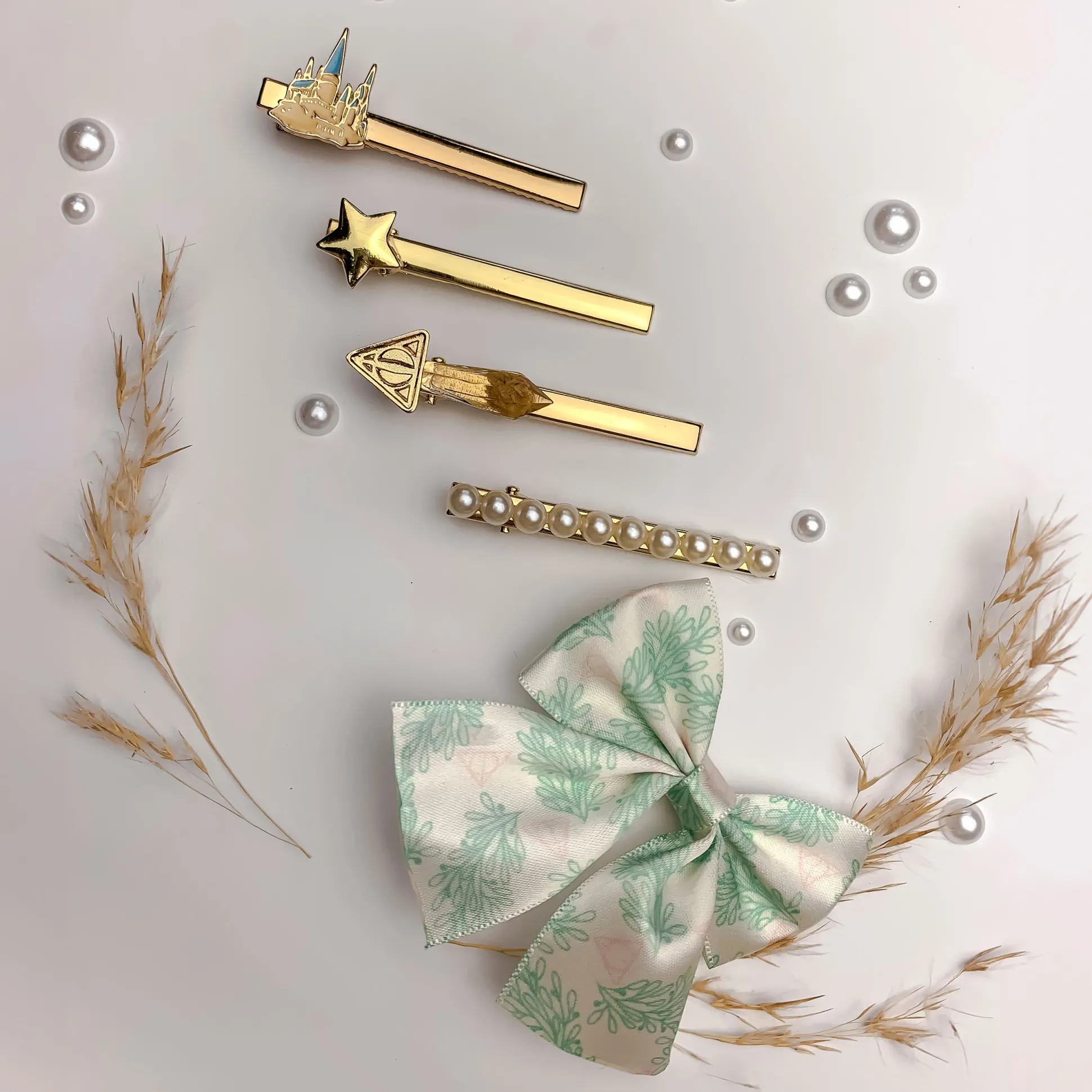 Duik in de magische wereld van Harry Potter met deze officieel gelicentieerde haarspeldenset van Elbenwald! Met vijf unieke ontwerpen, waaronder het majestueuze kasteel van Zweinstein, een chique strik, een fonkelende ster, glanzende parels en de mysterieuze Relieken van de Dood, voel je zeker de magie in je dagelijks leven. Betover je vrienden op het volgende Harry Potter-themafeest of toon simpelweg je liefde voor je favoriete serie in het dagelijks leven. Met deze set ben je altijd perfect gestyled en laat je iedereen zien dat je een echte fan bent!