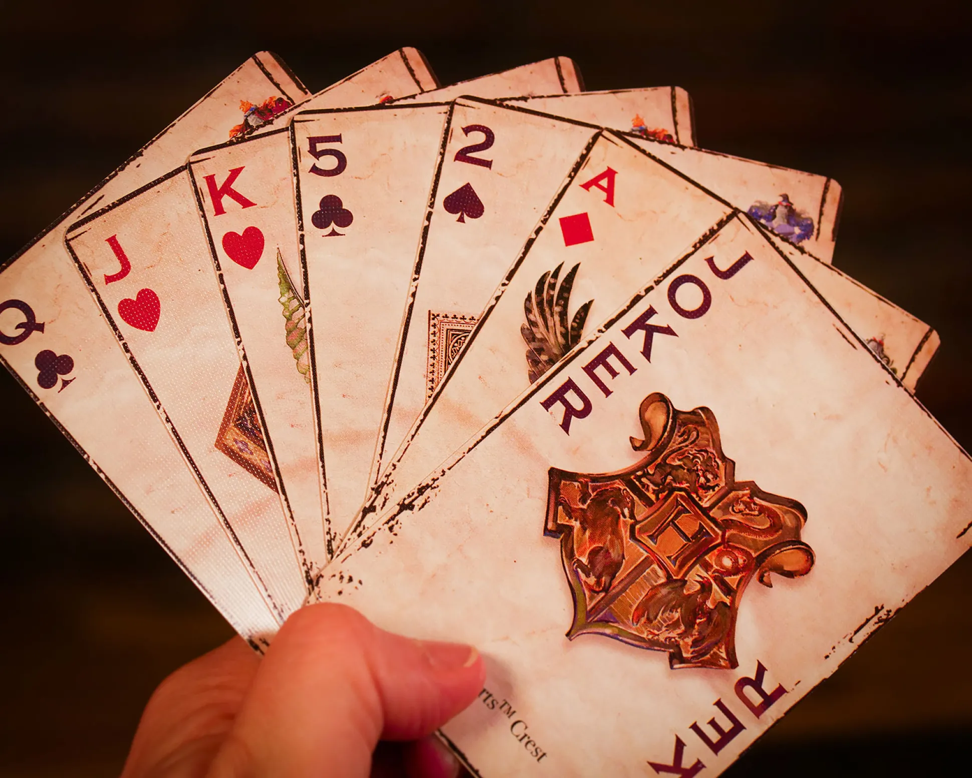 Skat, poker of jullie eigen Huisbeker-regels: dit deck speelt zo soepel als een Nimbus. Het perfecte cadeautje voor heksen, tovenaars en Dreuzels — en ja, bluffen telt als een spreuk.