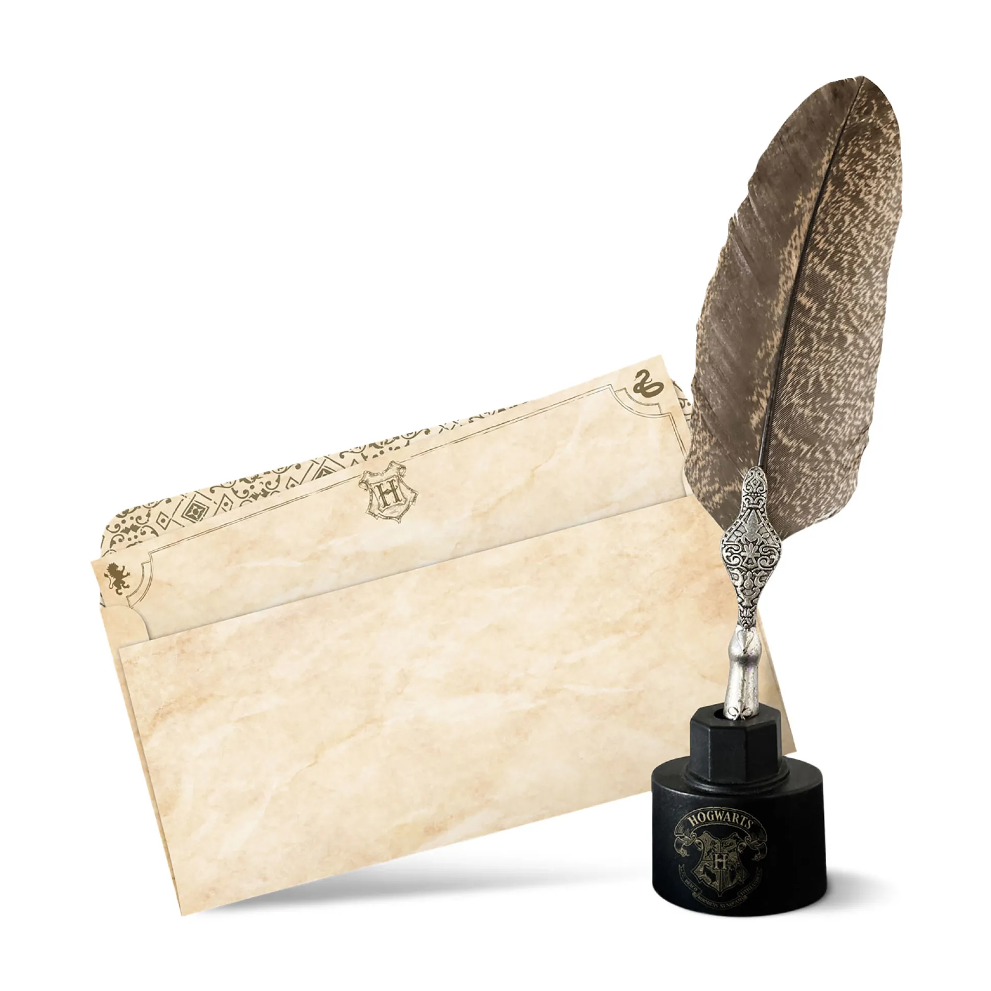 - inclusief 10-delige briefpapier set en 10 enveloppen, met Hogwarts-wapen en huisdieren