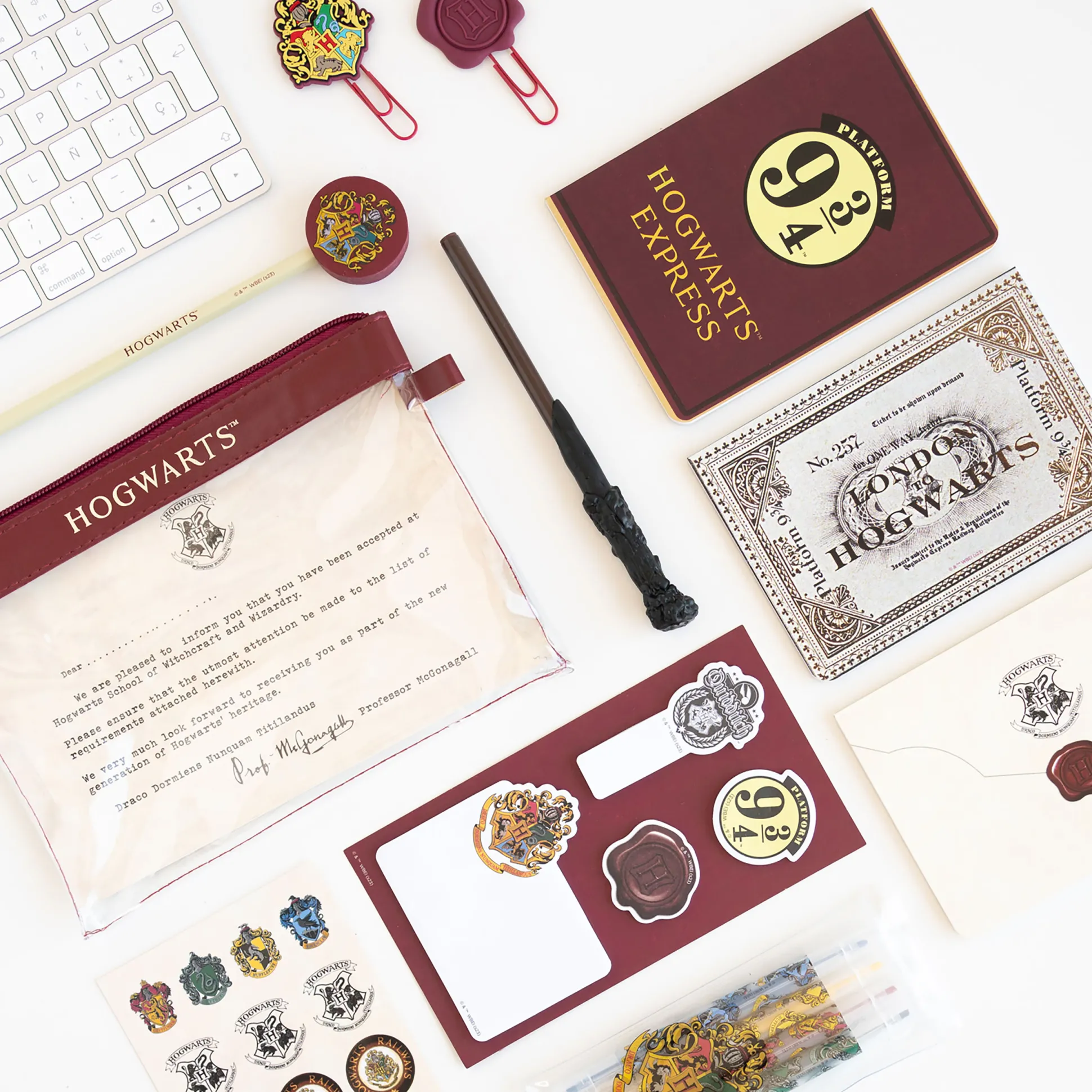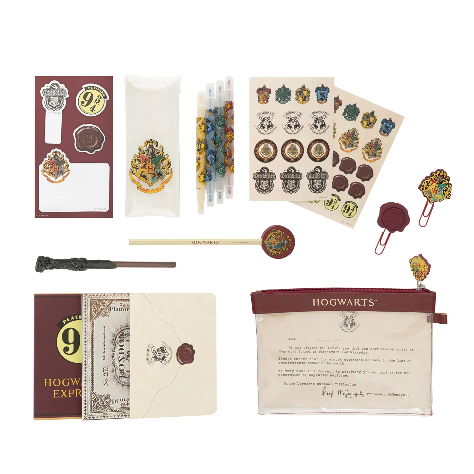 Schrijf je weg naar Zweinstein! Deze officieel gelicenseerde Harry Potter schrijvenset met 14 delen brengt alles wat heksen, tovenaars en Dreuzels nodig hebben voor notities, krabbels en plannen naar je bureau. Alles netjes opgeborgen in het bijpassende etui.