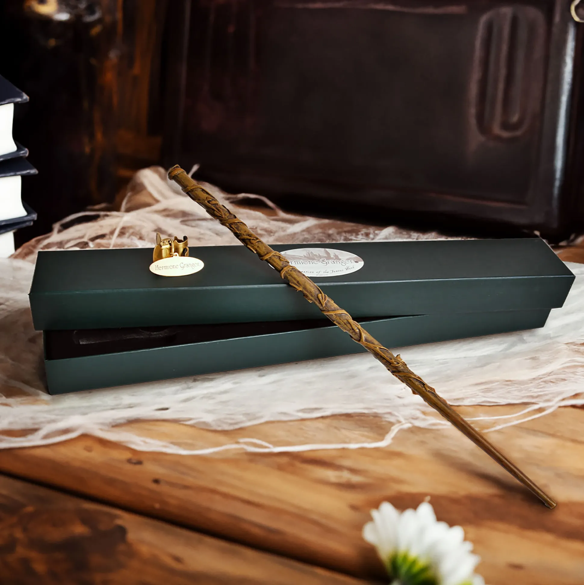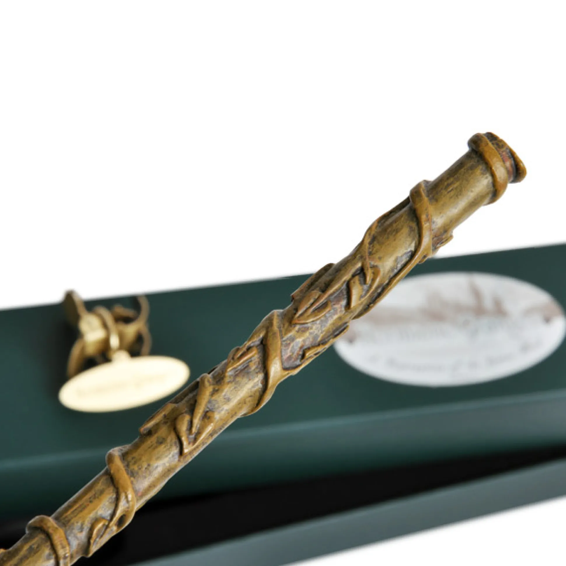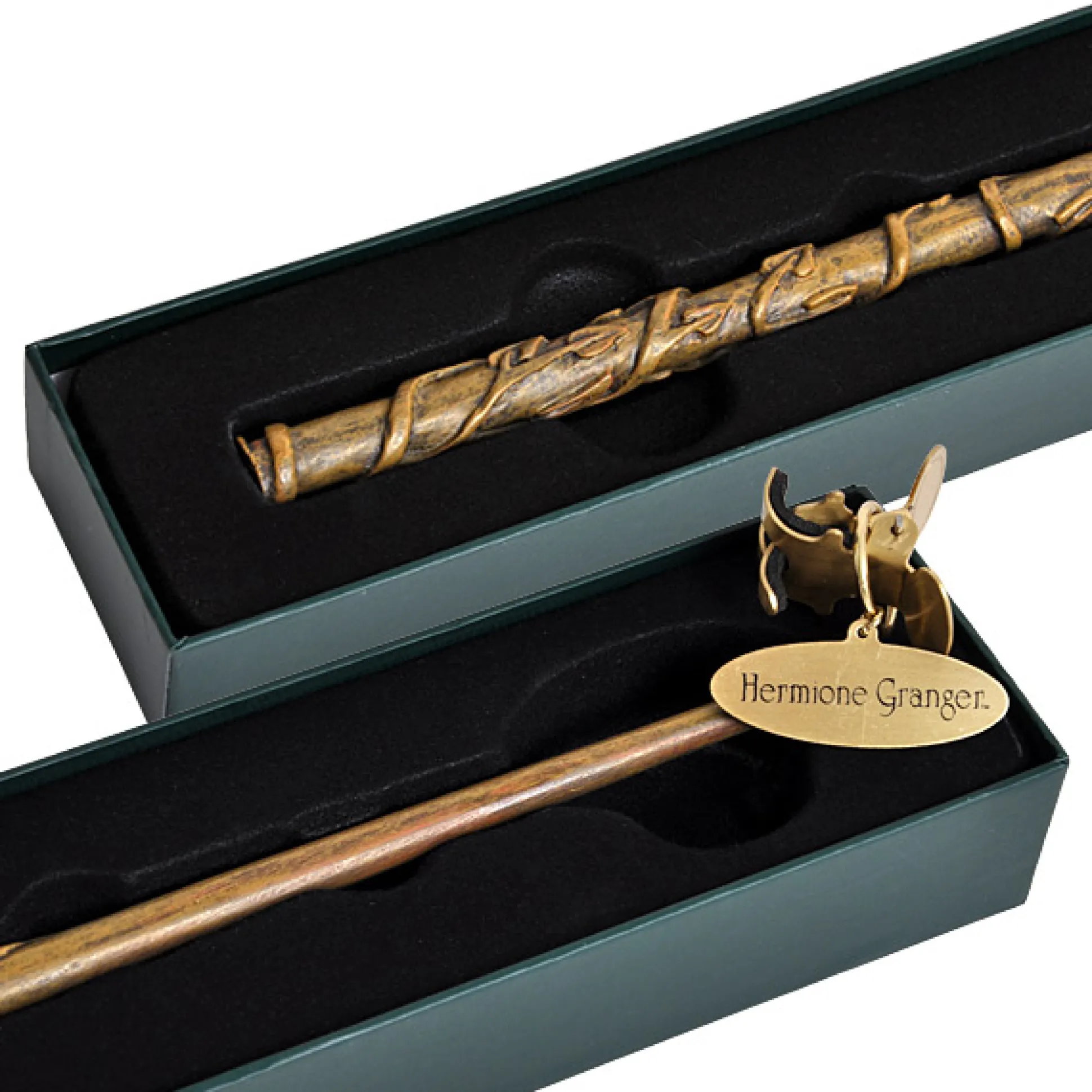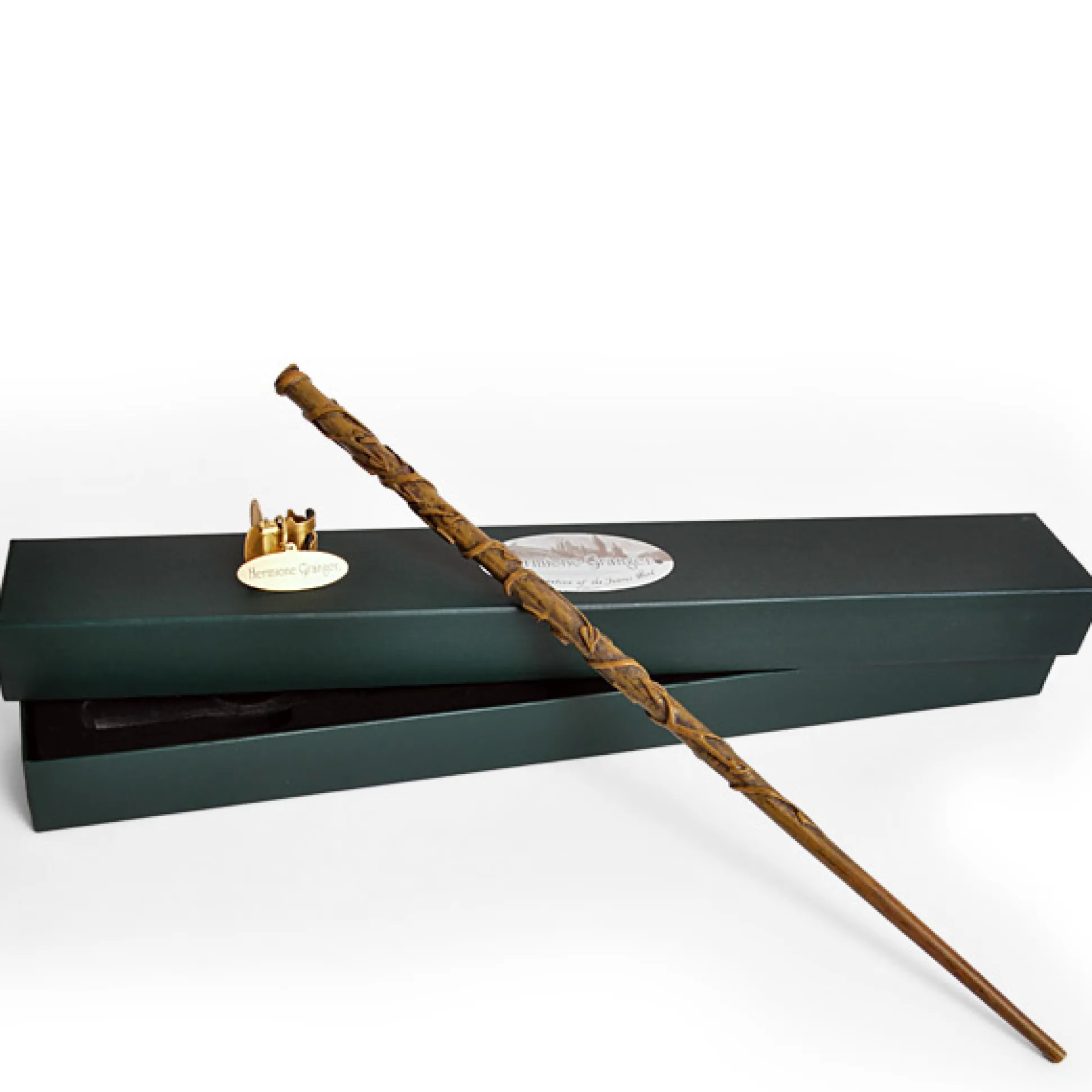 Hermelien’s toverstok is groenbruin gekleurd en versierd met aangehechte wijnstokken.