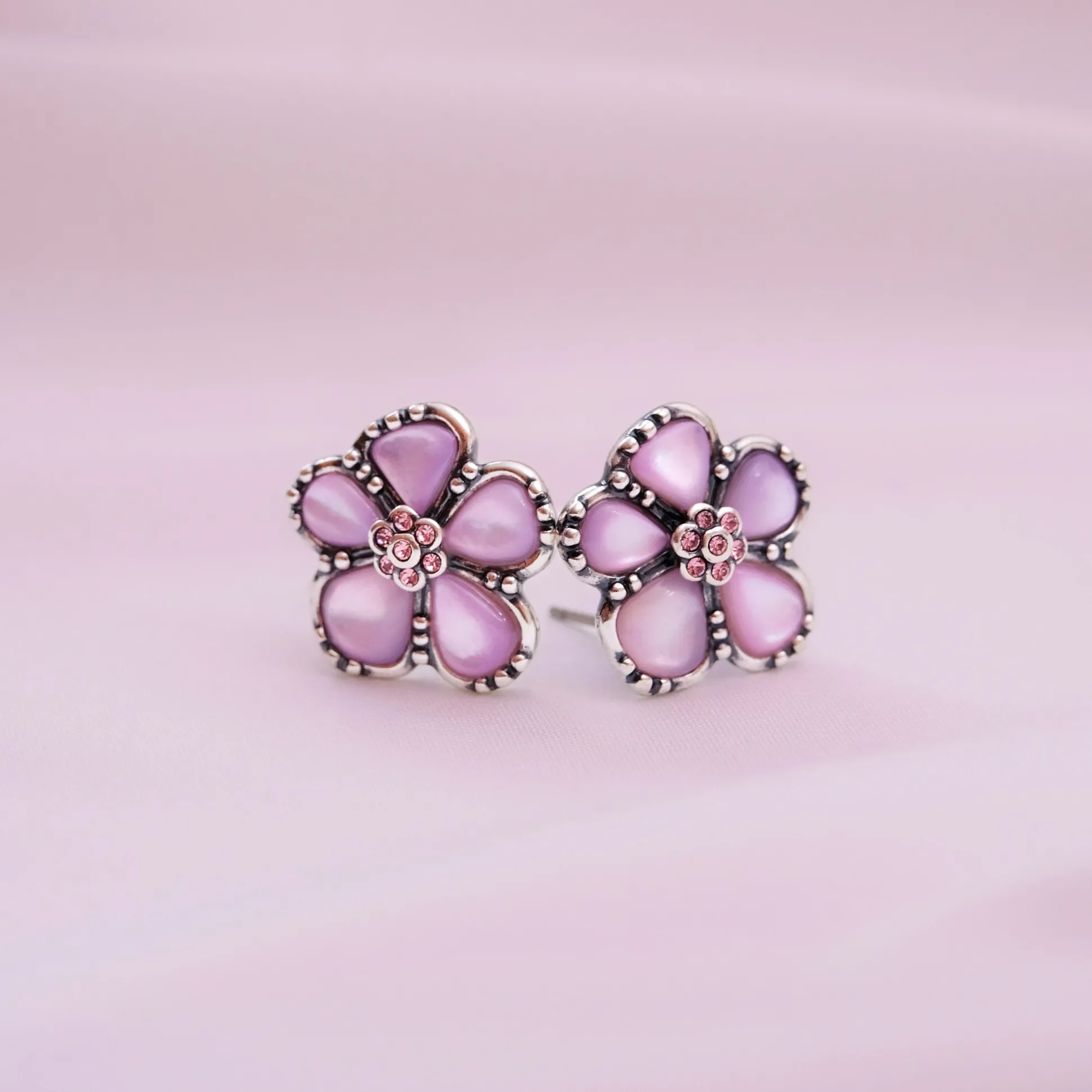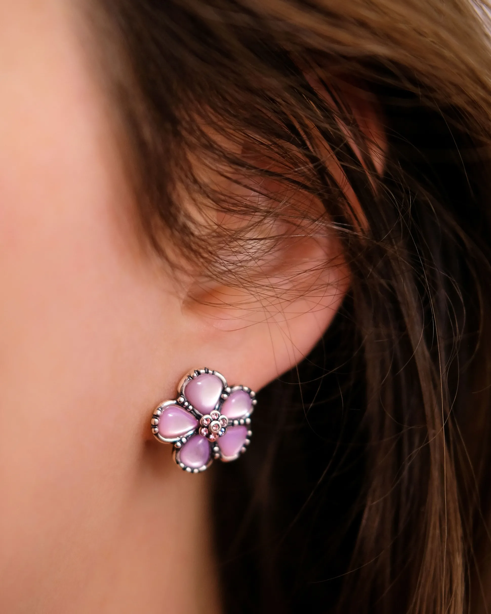 Gevormd uit luchtig-lichte bloemen, laten de oorbellen Hermione schitteren op het kerstbal en maken ze niet alleen indruk op haar begeleider Victor Krum. In het midden van de bloemen schitteren roze kristallen en breken het licht van de kroonluchters duizend keer.