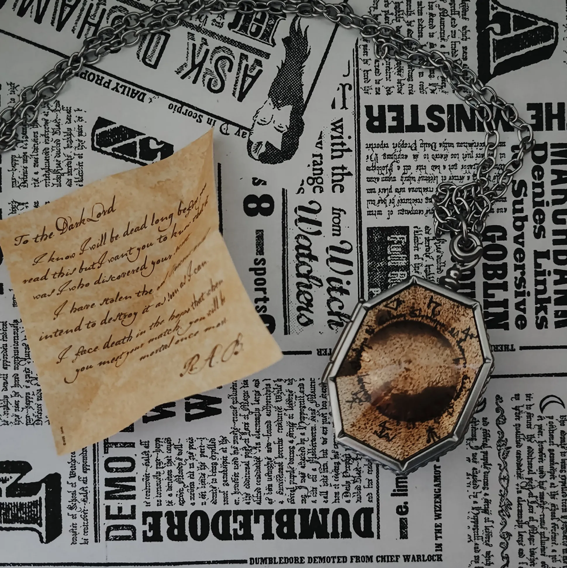Een zeer authentieke replica van het medaillon uit de grot in Harry Potter en de Halfbloed Prins.