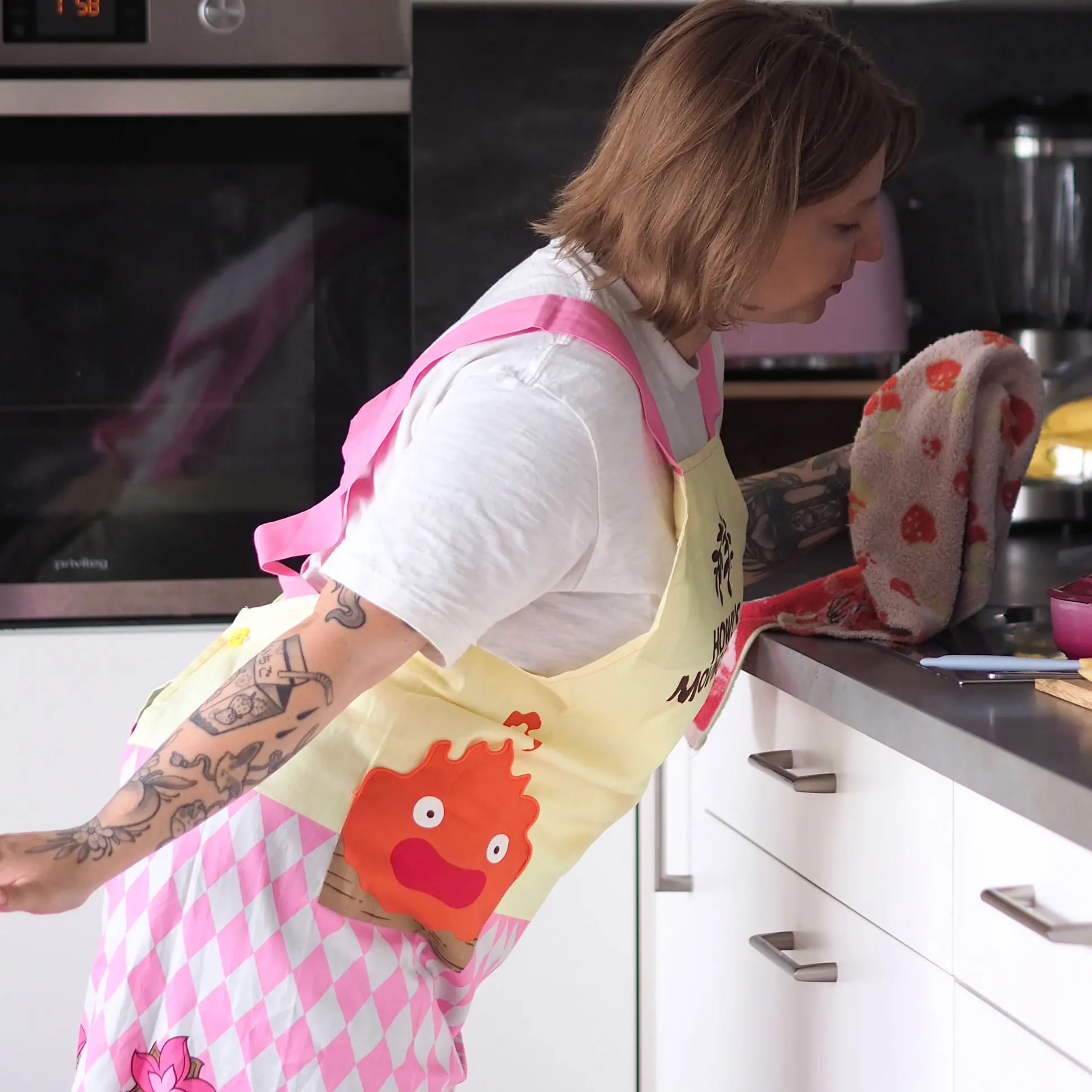 Laat Calcifer het vuur gaande houden terwijl jij kookt! Dit officieel gelicentieerde Studio Ghibli schort uit Howl’s Moving Castle brengt een vleugje keukenmagie in huis. Het zijvak met een vrolijke Calcifer houdt houten lepel, theedoek of geheime recepten binnen handbereik. De strikbanden zorgen voor een fijne pasvorm en het design geeft je direct Ghibli-vibes – van bakmarathons tot nachtelijke ramen-experimenten. Perfect om te koken of te bakken – en om te laten zien wie de echte tovenaar van de keuken is.