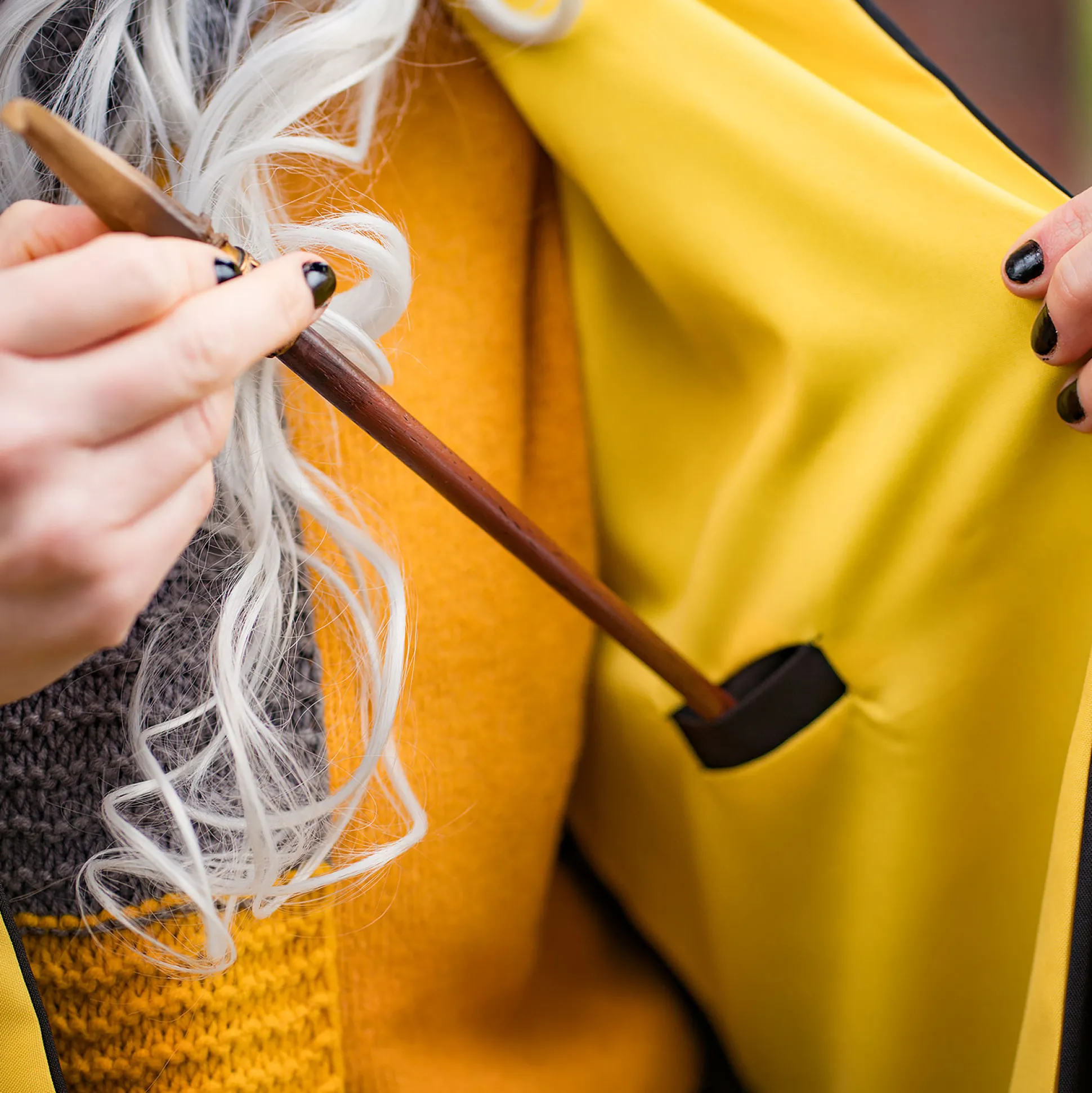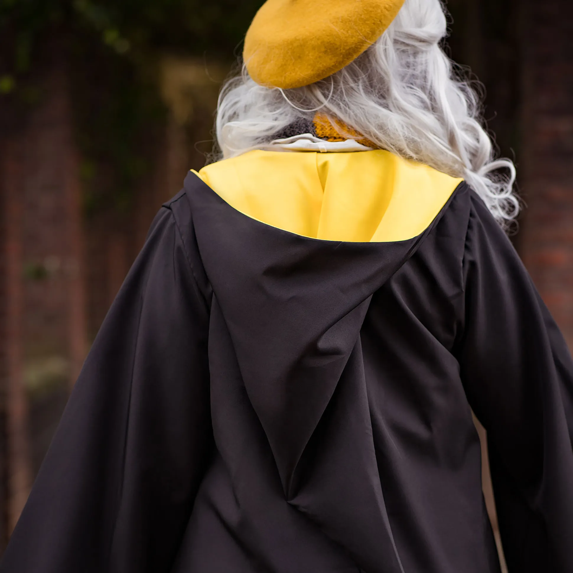 - Replica van de Huffelpuf mantel met puntige kap