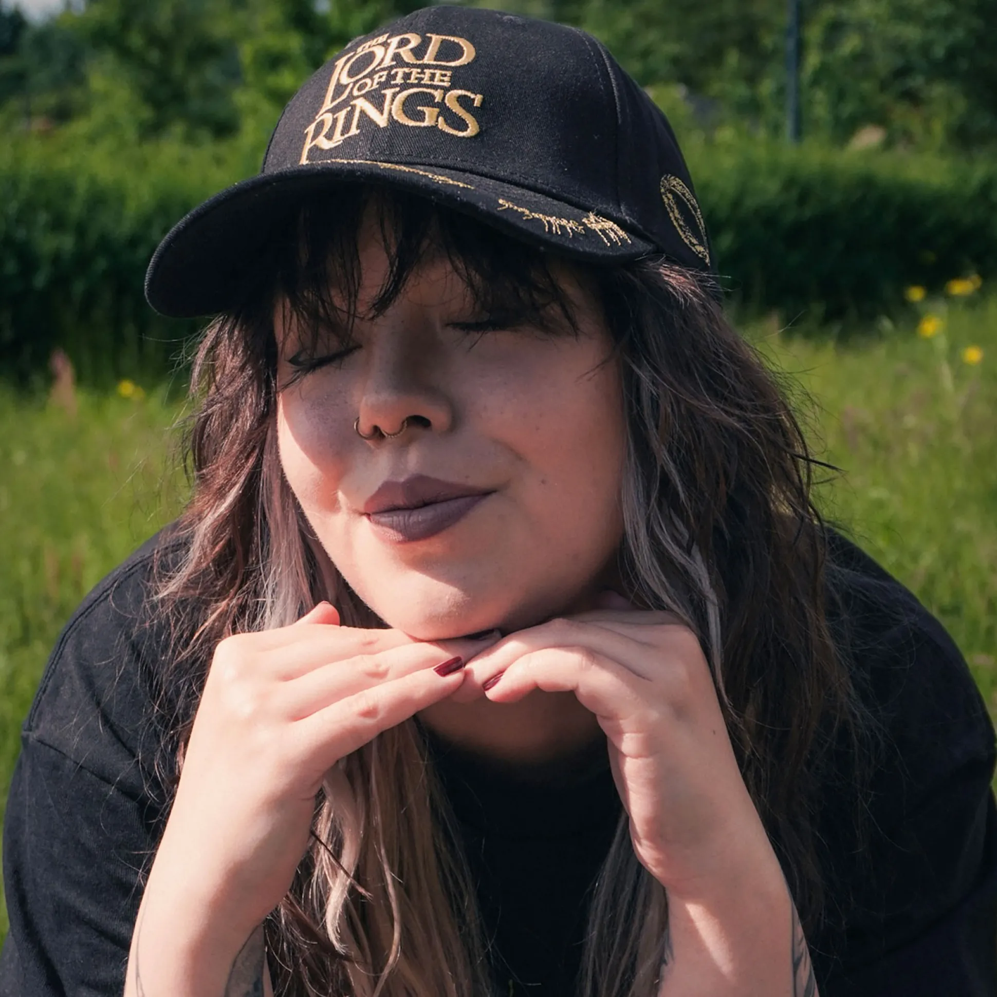 - geborduurd logo aan de voorkant en inscriptie van de Ene Ring op de klep