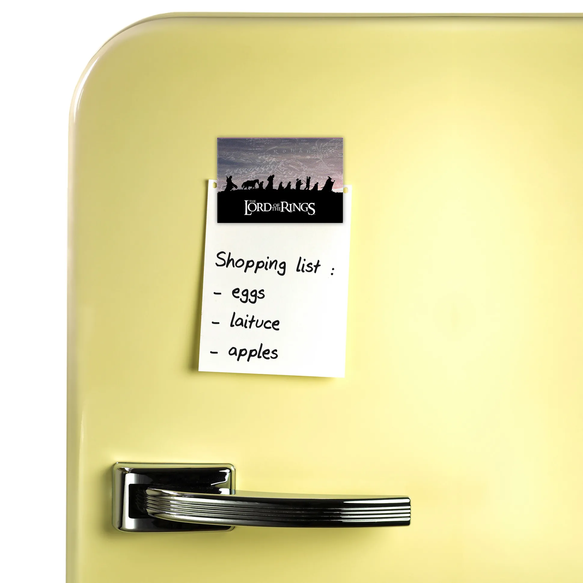 Negen metgezellen, één missie: jouw koelkast bewaken. Deze officieel gelicentieerde The Lord of the Rings‑magneet toont The Fellowship en houdt je notities, to-do’s en geheime Hobbit-snackplannen stevig op hun plek. Dankzij de volledig magnetische achterkant blijft alles zitten op koelkast, locker of whiteboard. Compact formaat 5,5 x 0,2 x 8 cm — past overal en valt toch op. Het perfecte kleinigheidje voor fans van Midden‑aarde of als upgrade voor de deur van je voorraadkast.