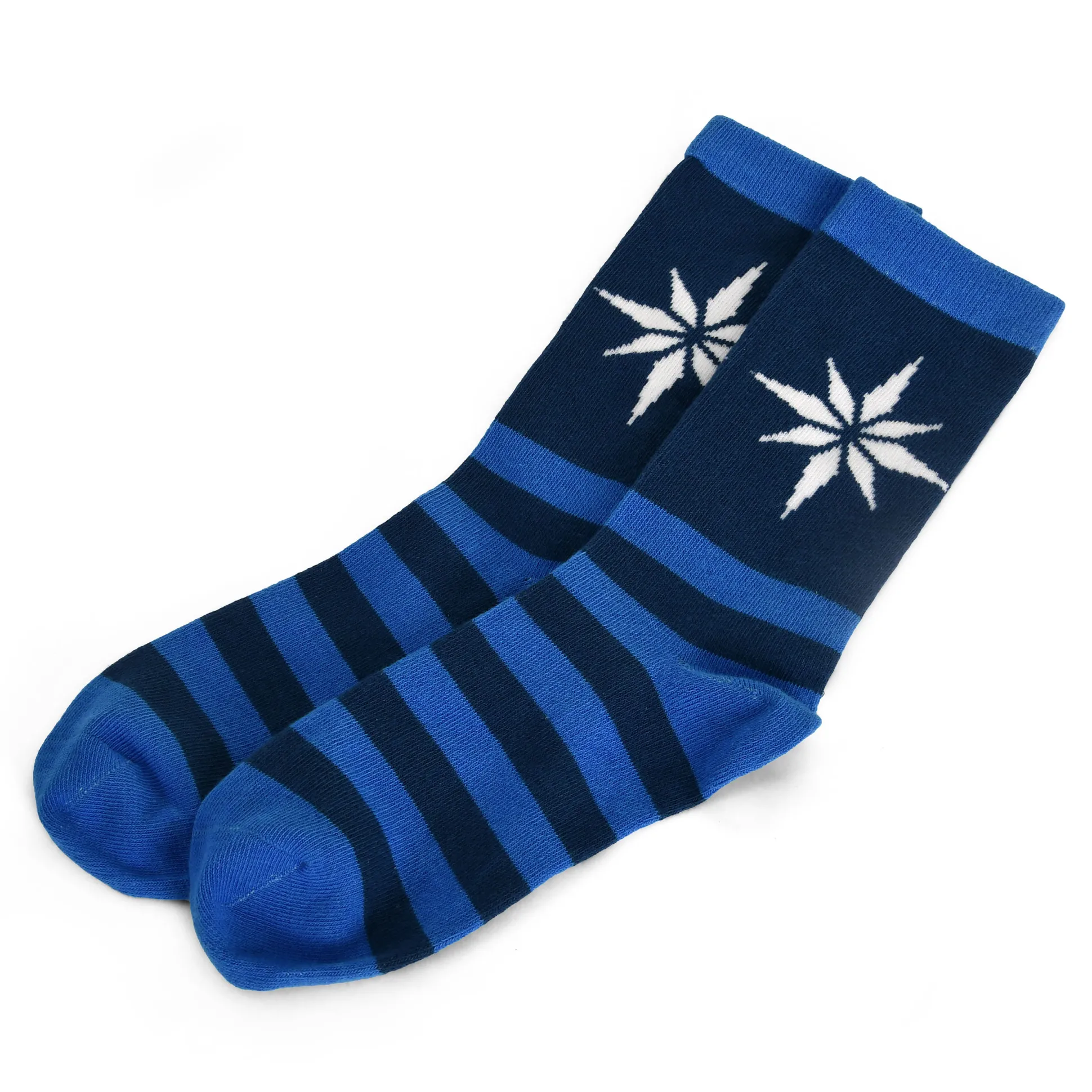Stap Midden-aarde binnen — letterlijk. Deze officieel gelicentieerde In de ban van de Ring sokken brengen edele heraldiek naar je voeten. In diepblauw en met stevige boorden blijven ze keurig zitten bij elke queeste van bank naar koelkast.
