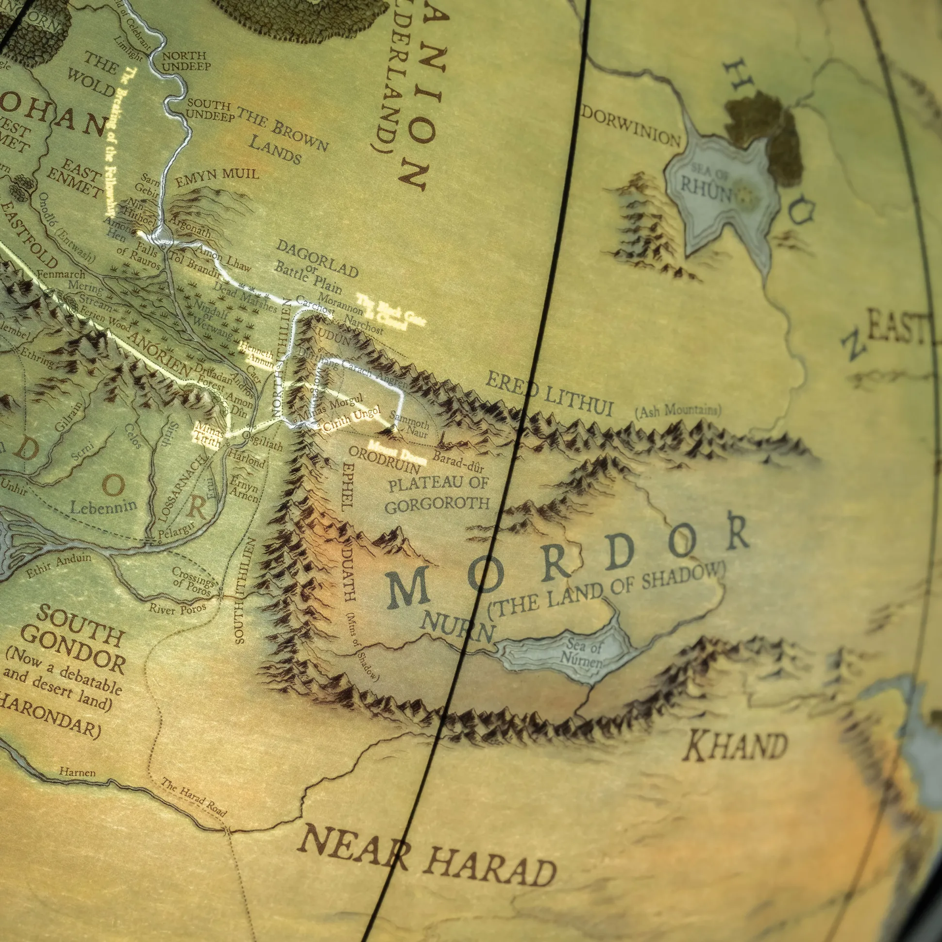 Met één draai reis je door Midden-aarde – en met een klik zie je waar Bilbo en Frodo liepen. Deze officieel gelicentieerde In de Ban van de Ring-globe (Engelse aanduidingen), gemaakt in Duitsland, toont de volledige topografie van Tolkiens Midden-aarde. Zet het licht aan en de reisroutes van Bilbo en Frodo verschijnen als bij toverslag. De globe is met de hand bekleed, Ø 30 cm, totale hoogte 36 cm, en hoogwaardig afgewerkt – het concept is ontwikkeld in samenwerking met John Howe. Voor op je bureau, in de boekenkast of in de woonkamer: licht aan, avontuur aan.