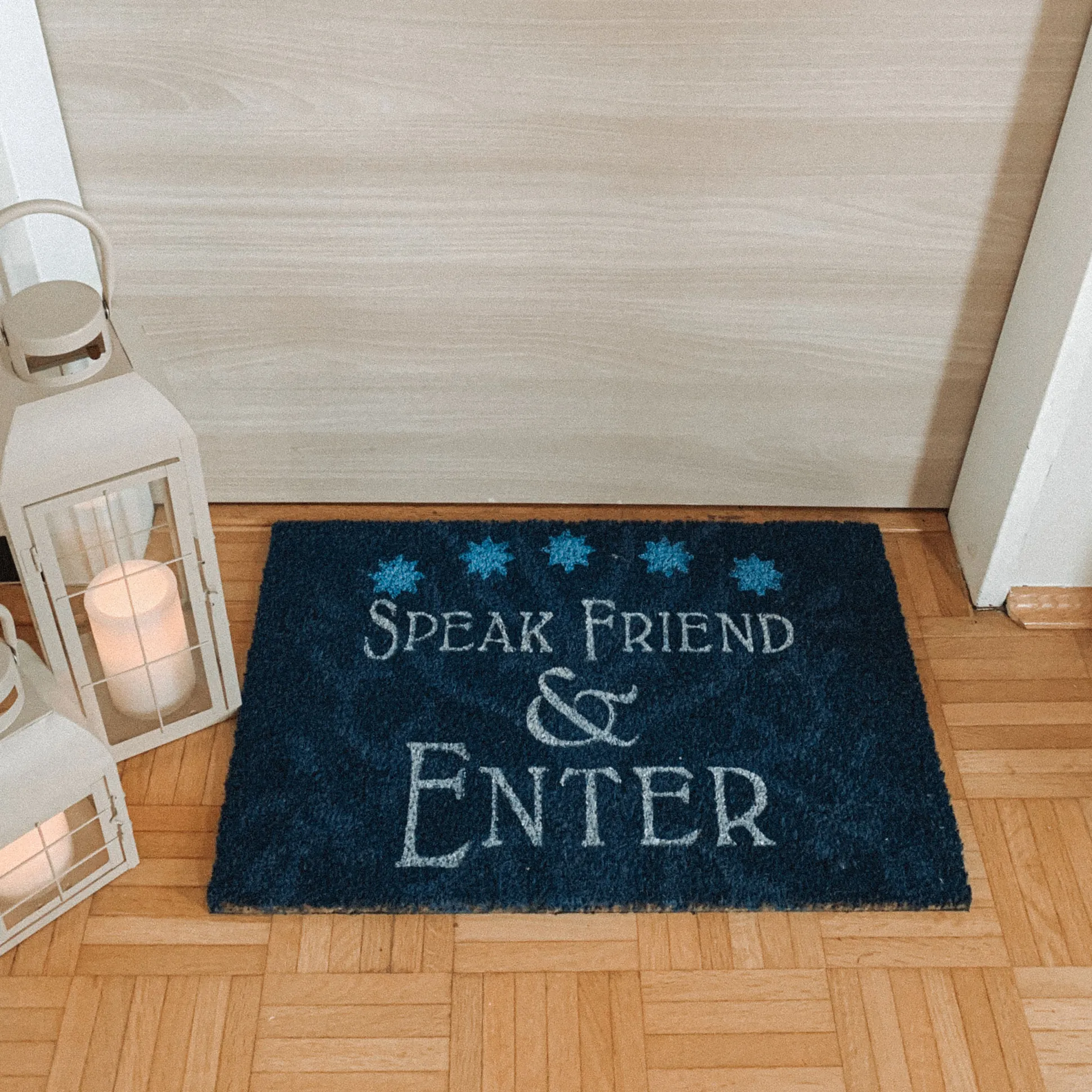 Welkom in Midden-aarde! Of nou ja, aan je voordeur. Met de officieel gelicentieerde The Lord of the Rings “Speak Friend & Enter” deurmat weet elke gast direct: hier woont een echte fan! Het legendarische elfenraadsel uit de Mijn van Moria schittert op deze antislipmat die water- en lichtbestendig is. Modderige schoenen? Geen probleem – de kunststof onderkant is zo weer schoon. Zelfs als een Ork op de koffie komt: gewoon het juiste wachtwoord zeggen (en de mat bewonderen). Afmetingen: 60 x 40 x 1,5 cm, felblauw – ideaal voor iedereen die een beetje fantasy aan de voordeur wil!