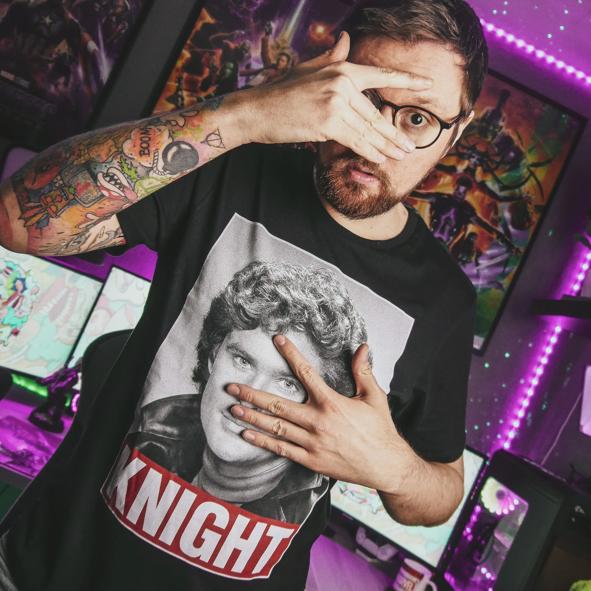 Klaar voor een ritje? Dit officieel gelicentieerde Knight Rider T-shirt haalt David Hasselhoff als Michael Knight met een grote opdruk op de voorkant naar je kledingkast. Zwart, rechte pasvorm, ronde hals – comfortabel, simpel, pure 80’s. Perfect voor binge-avonden, dagelijkse missies en voor iedereen met een Turbo Boost in het hart. K.I.T.T. niet inbegrepen, de aandacht wel. Gordel? Niet nodig – gewoon aantrekken.