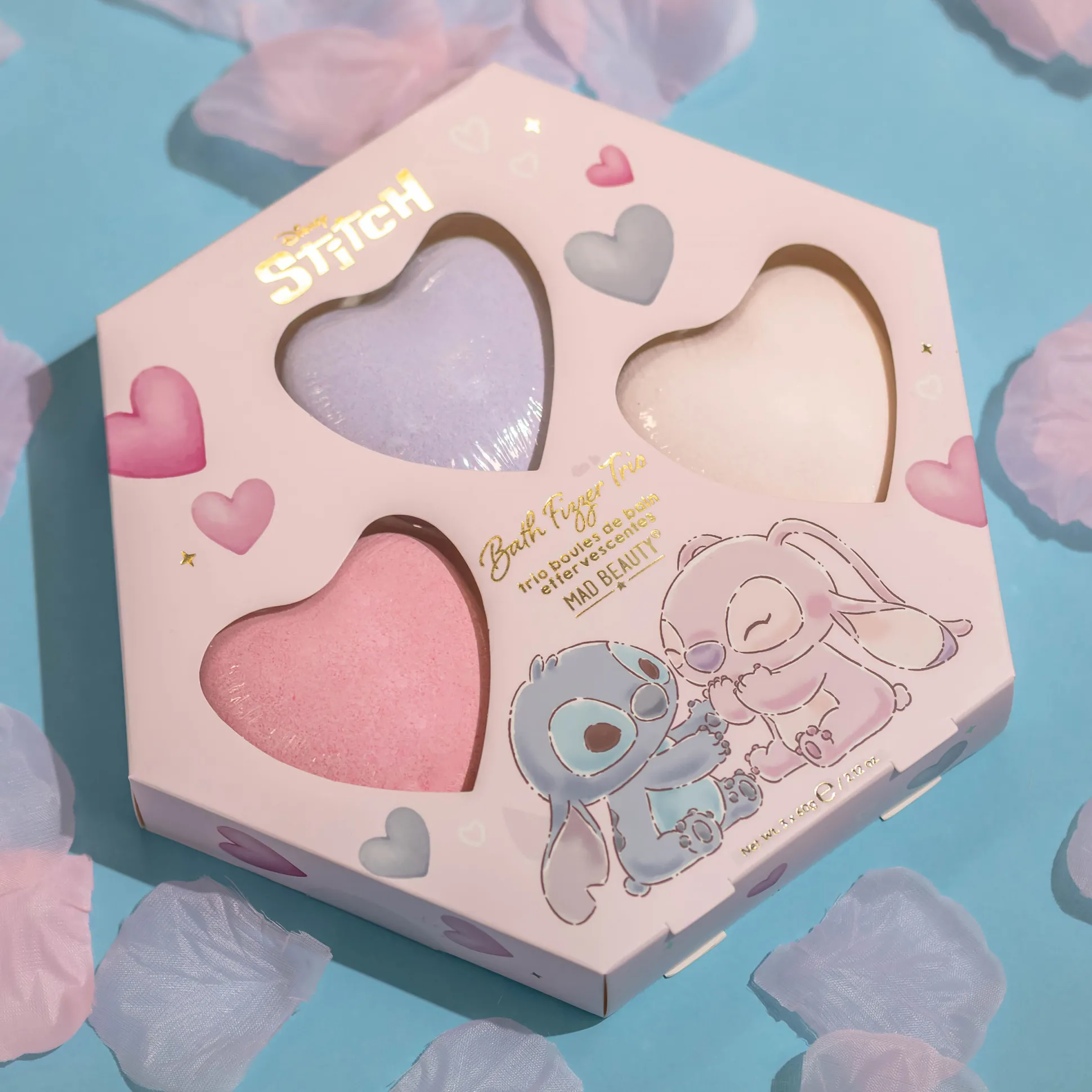 Aloha voor je badkuip! Met Angel en Stitch aan je zijde wordt ieder bad een mini-eilandvakantie. Deze officieel gelicentieerde cosmeticaset van Disney’s Lilo & Stitch brengt je drie hartvormige badbruisballen in een decoratieve verpakking – perfect voor je selfcare-ritueel of als schattige verrassing voor je ohana. Laat ze gewoon in warm water ploppen, laat het bruisen en stuur je stress op vakantie. Zoete look, bruisende mood, maximale ontspanning. Team Angel of Team Stitch? Met dit trio hoef je niet te kiezen.