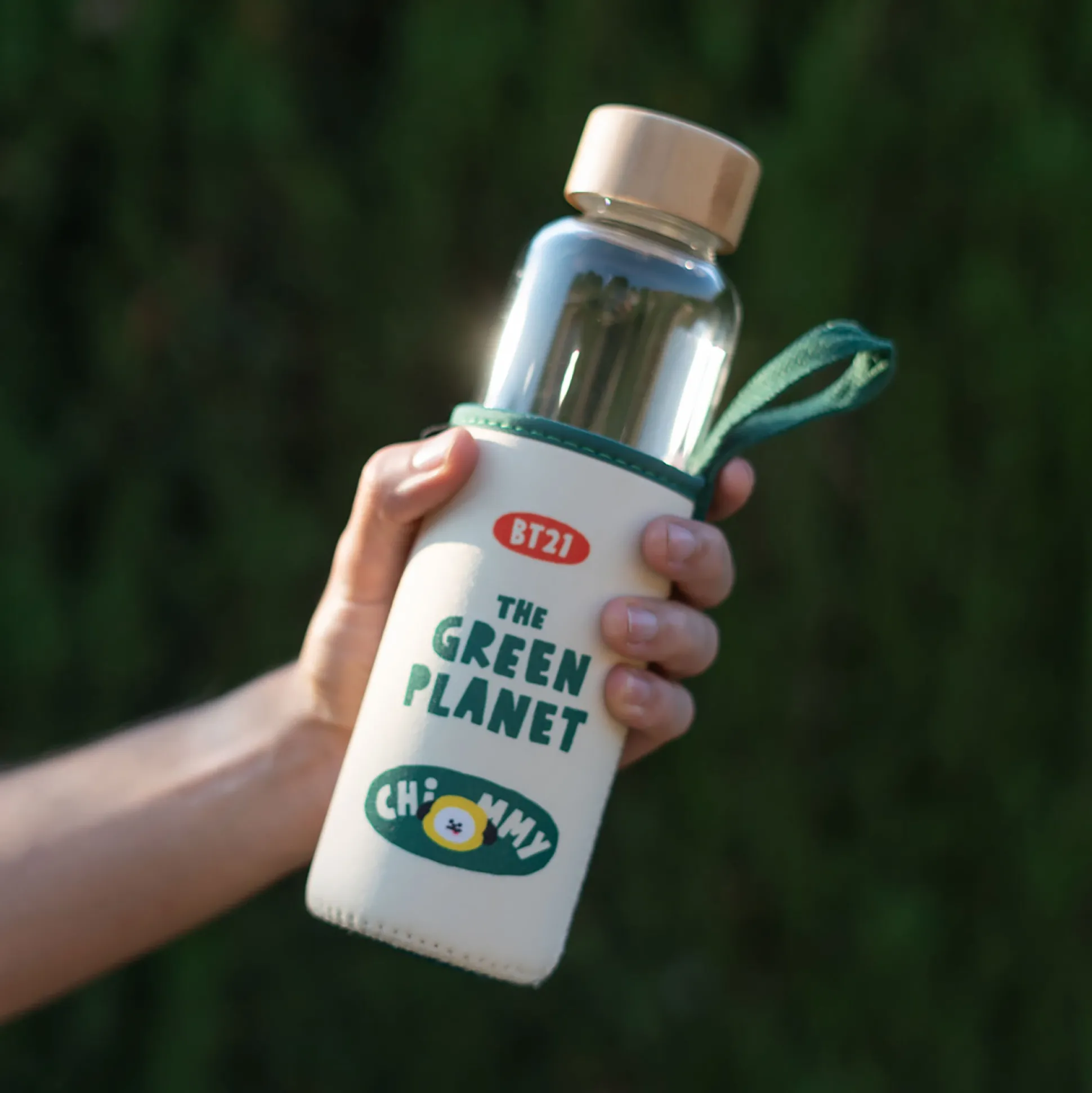 Chimmy heeft dorst — en jij drinkt met een glimlach: met de officieel gelicentieerde BT21 Green Planet drinkfles van Line Friends gaan de good vibes elke dag met je mee.