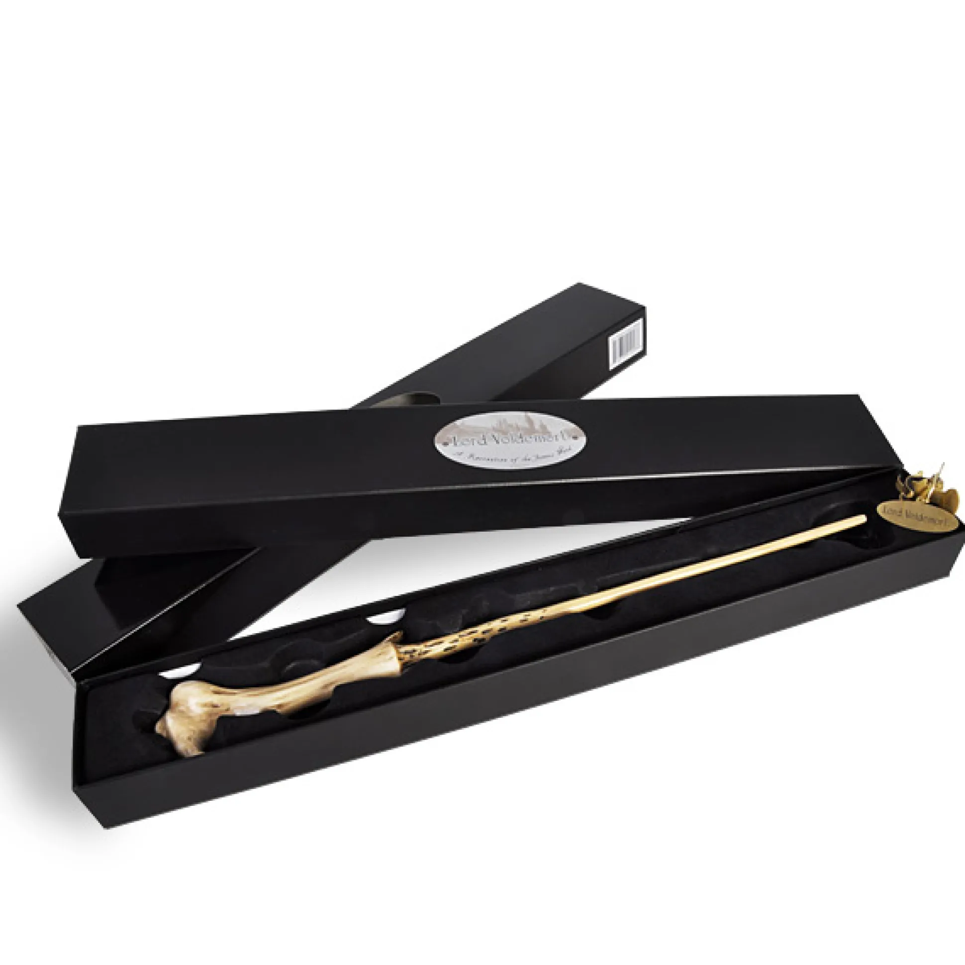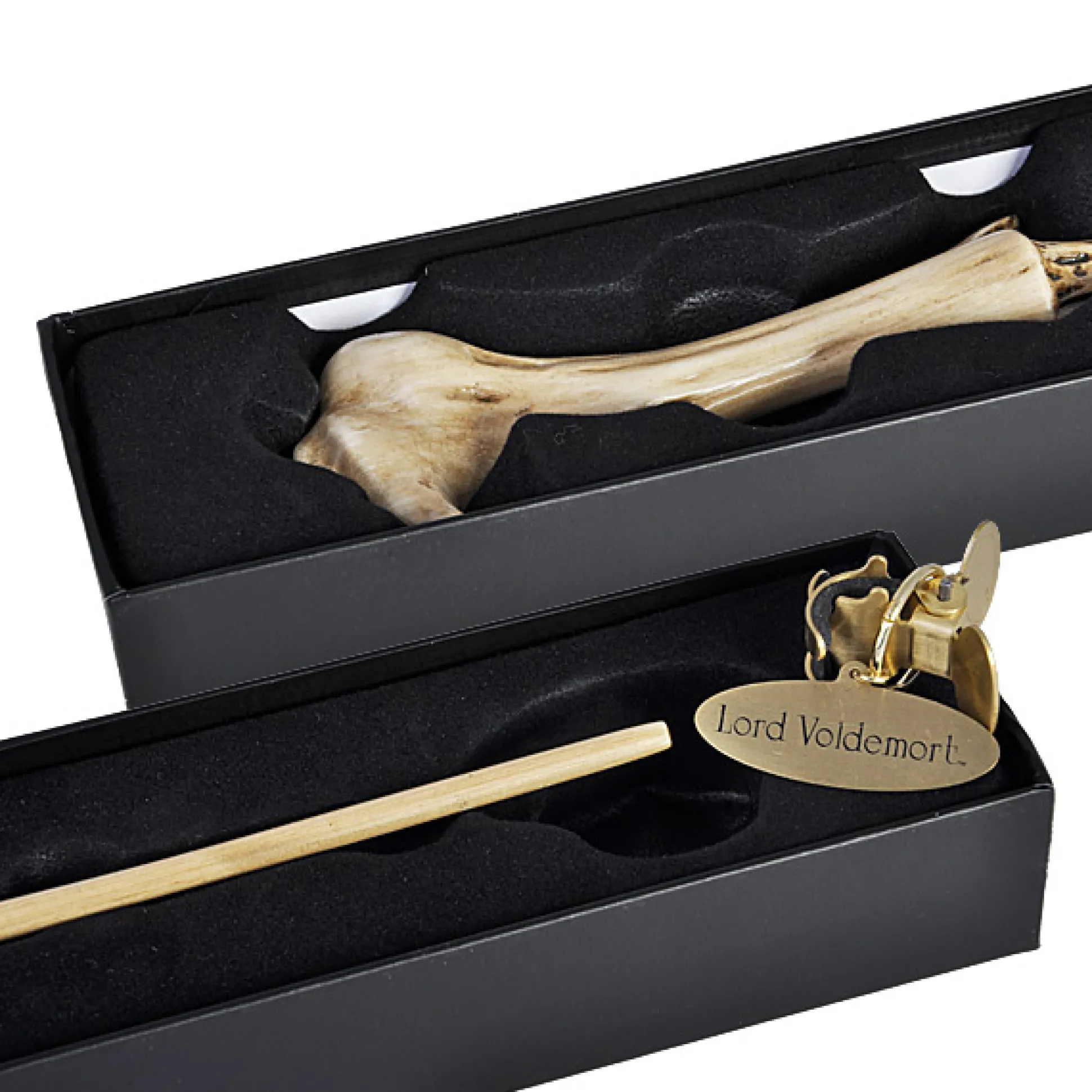 Lord Voldemort is de machtigste duistere tovenaar in de geschiedenis, die Harry’s ouders heeft vermoord en Harry zelf het bliksemvormige litteken op zijn voorhoofd heeft gegeven. Hij bezit de ‘broer’ van Harry’s toverstaf, die ook een veer bevat van Perkamentus’ feniks Fawkes. Voldemorts staf is 13 1/2 inch lang en gemaakt van taxushout. De boom past goed bij de Duistere Heer, omdat hij zeer duurzaam is, in alle delen giftig, en symbool staat voor dood en wedergeboorte.