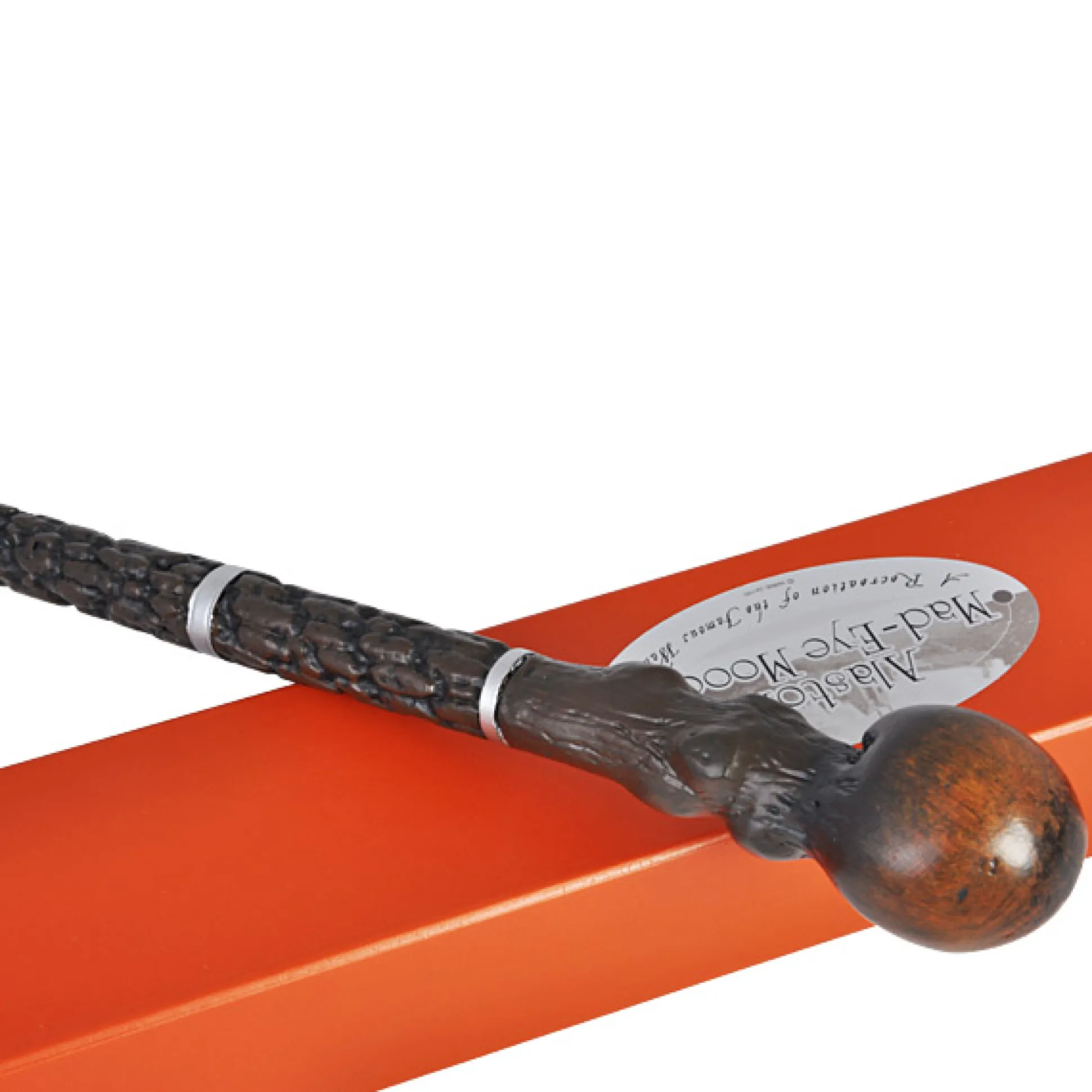 De toverstok van Mad-Eye is lang en dik (dikste deel van de toverstok ca. 2 cm, bol op het handvat ca. 3 cm) en daardoor zwaar. Het heeft de structuur van ruwe boombast en is donkerbruin. Voor het handvat zitten twee zilverkleurige decoratieve randen. Het handvat zelf is minder gestructureerd maar golvend. Het lijkt op een knoestige oude boom. Aan het uiteinde van het handvat zit een bol die perfect in de palm van je hand past.
