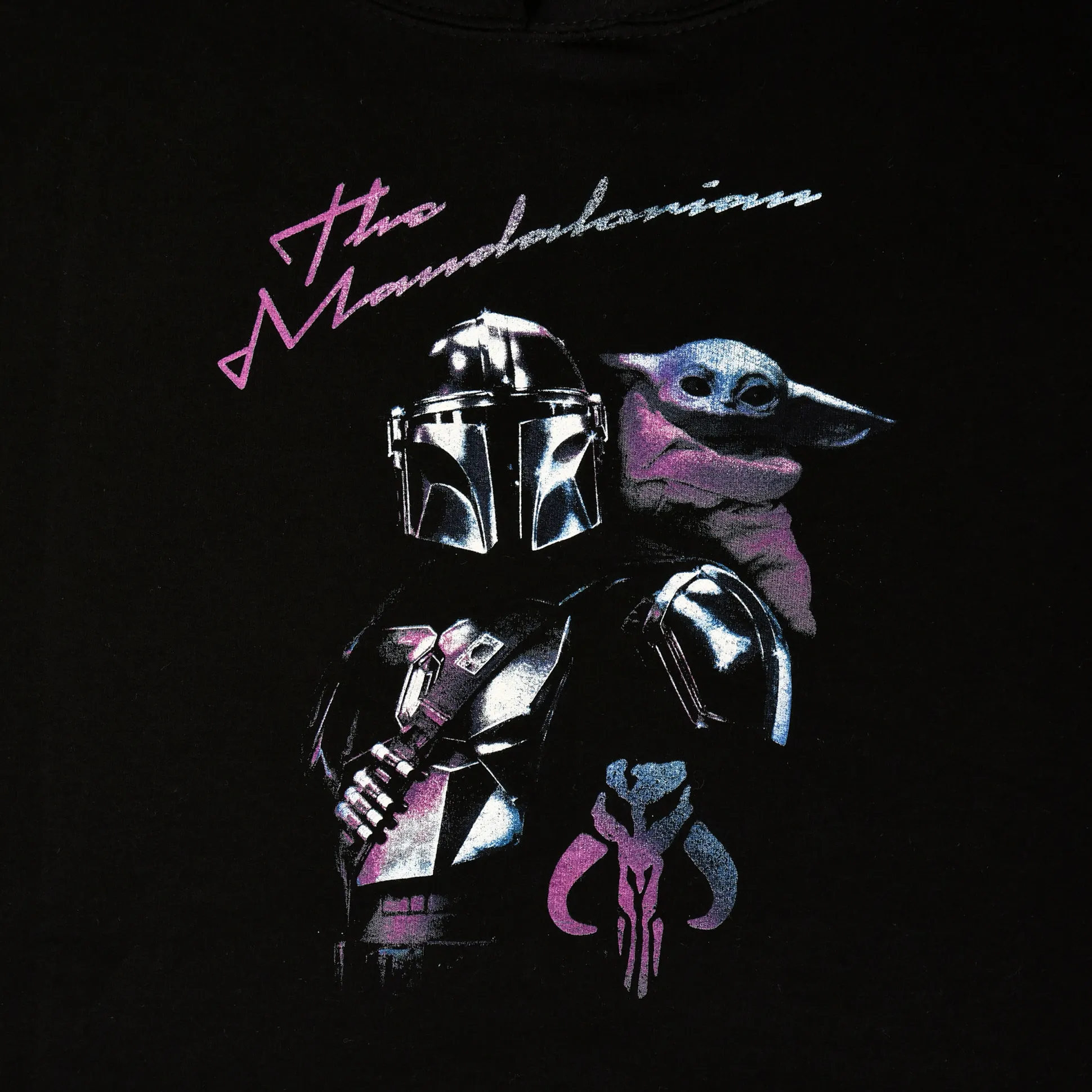 - Mando en Grogu frontprint, ‘The Mandalorian’ letters op de mouw