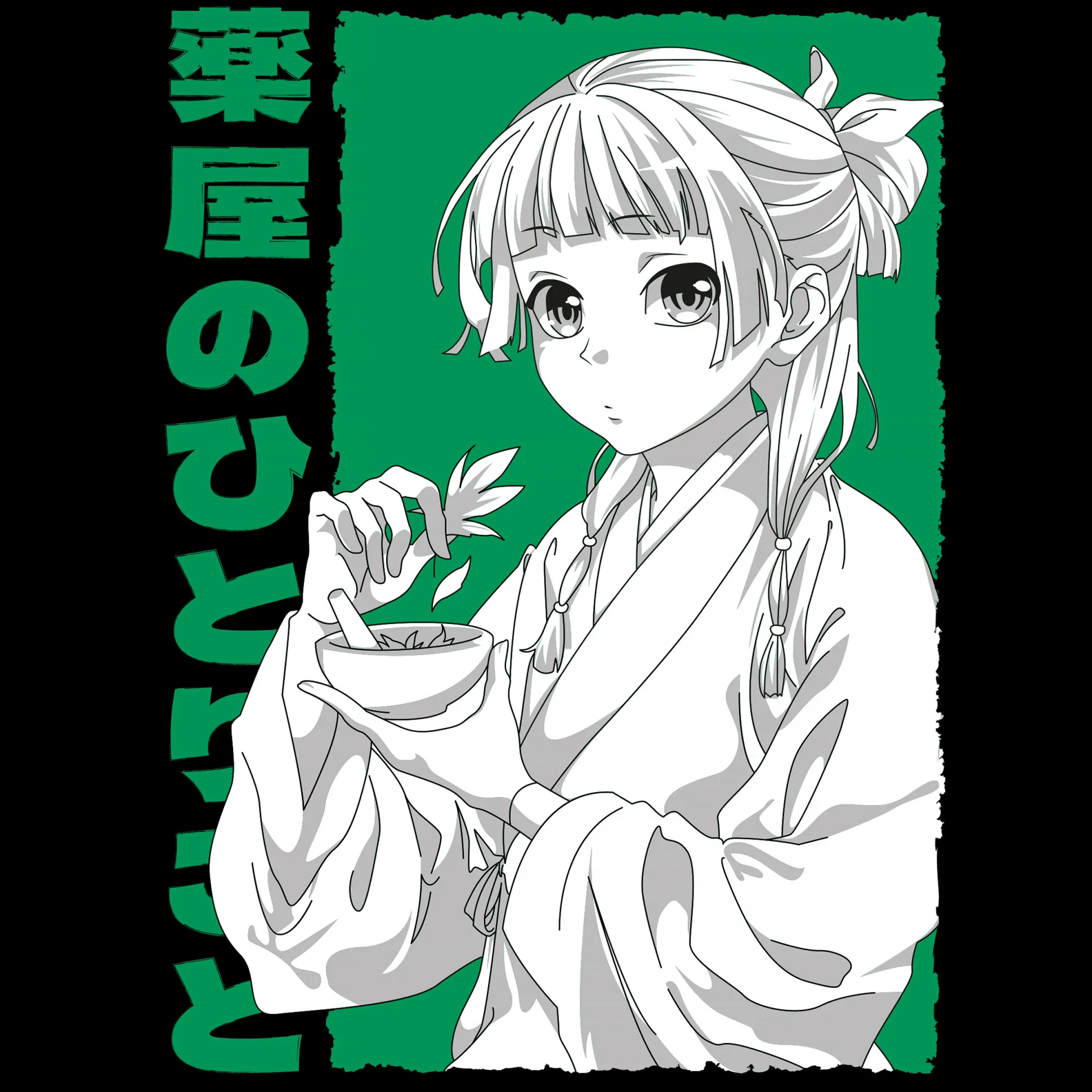 Maomao op je borst, mysterie opgelost. Dit zwarte T-shirt voor fans van The Apothecary Diaries zet de slimste apotheker van het keizerlijke hof pontificaal op de voorkant met een grote print. Klassieke ronde hals en rechte pasvorm: comfortabel voor paleisboodschappen, kruidenjacht en bankmarathons. Geen gif, wel 100% fan-energie. Kleur: zwart; pasvorm: recht; hals: rond — matcht makkelijk met alles, van jeans tot labnotities. Haal een stukje Binnenpaleis in je garderobe en laat Maomao het woord doen.
