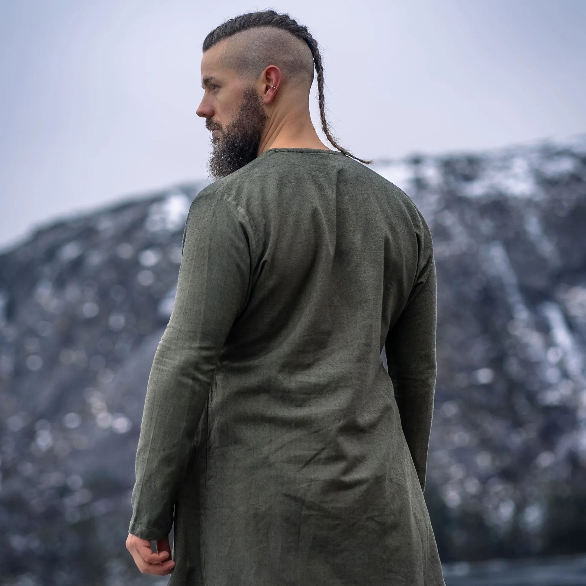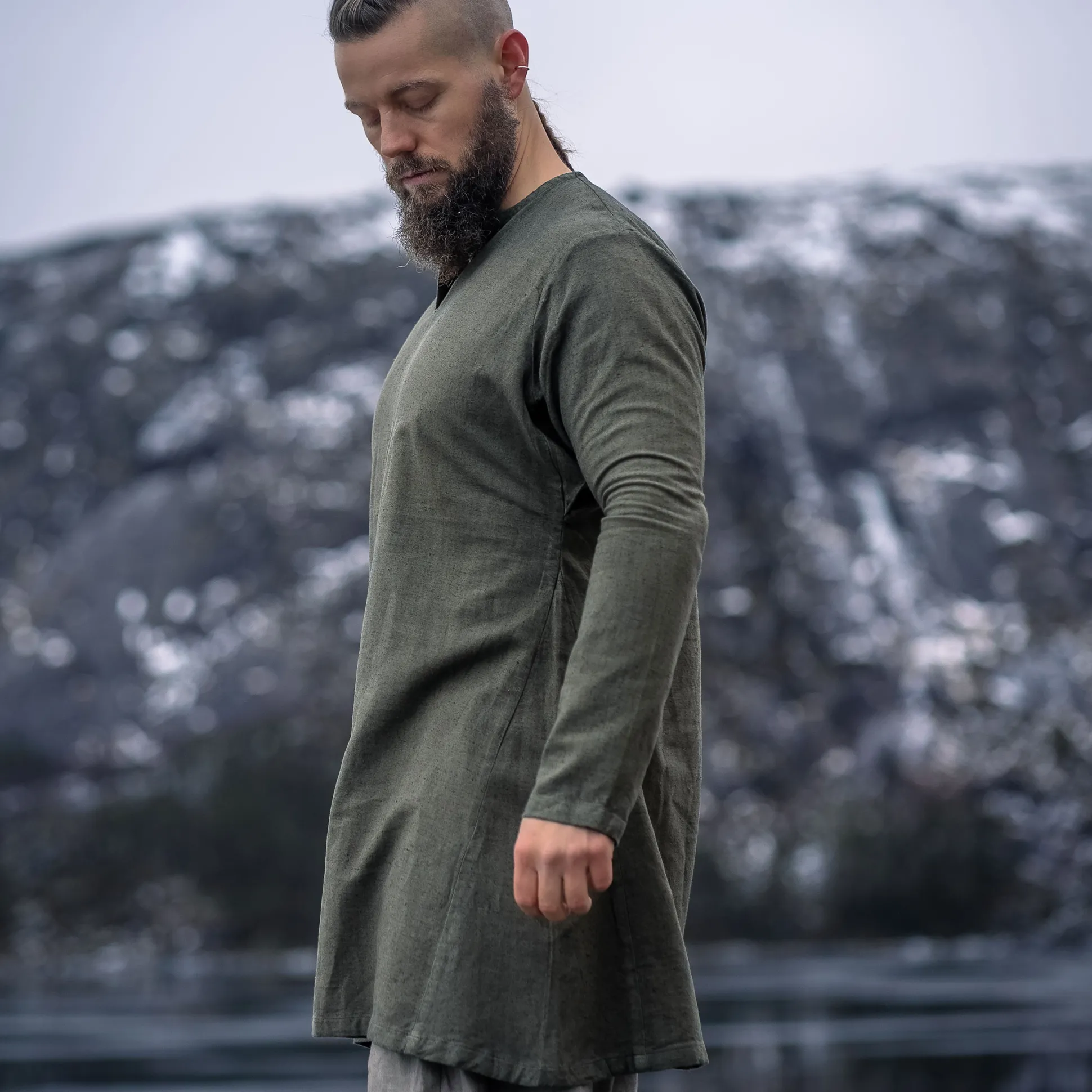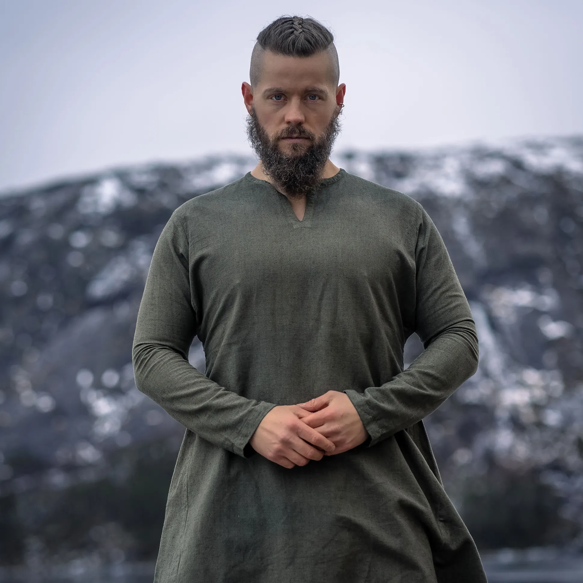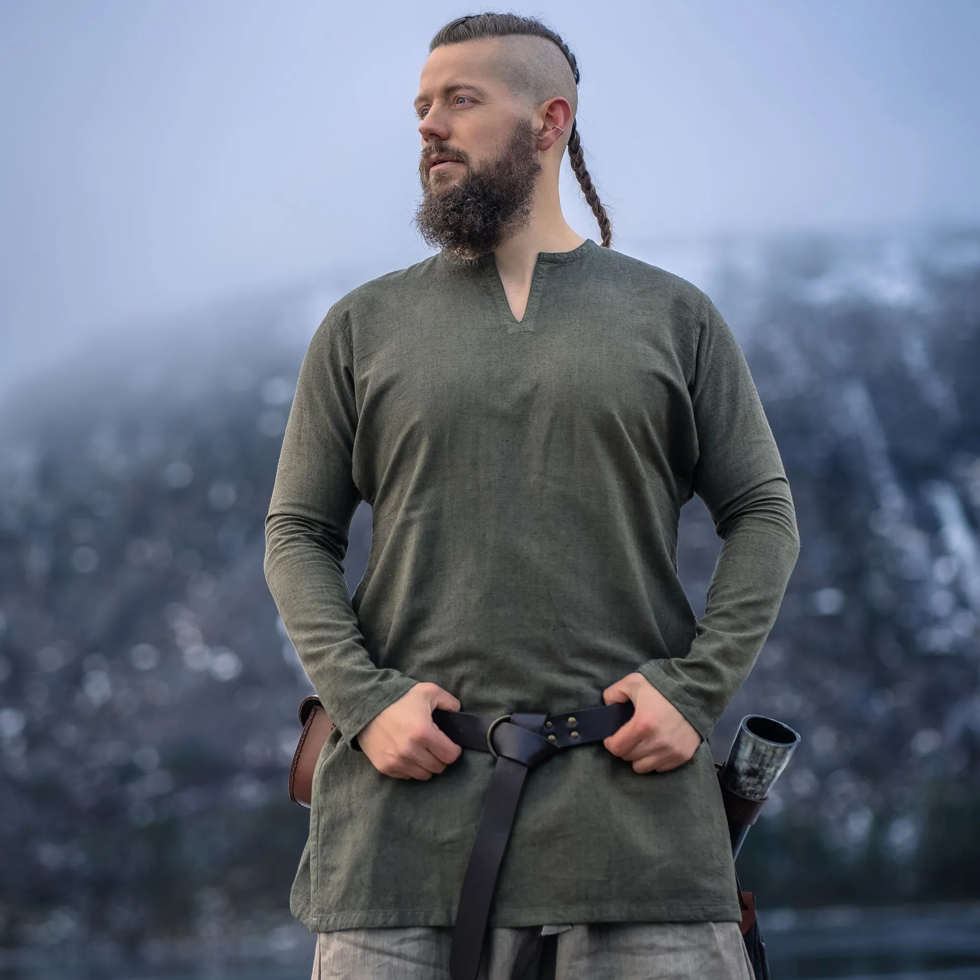 Ben je klaar om in de tijdmachine te stappen en terug te keren naar het tijdperk van dappere ridders en nobele dames? Dan is de Middeleeuwse tuniek Ragnar groen precies wat je nodig hebt! Met zijn rechte snit en lange mouwen brengt het de middeleeuwse flair direct naar je huis. De ronde halslijn met puntige uitloop zorgt voor een authentieke look die je direct naar de tijd van Koning Arthur en zijn Ridders van de Ronde Tafel transporteert. En het beste deel? Het is niet alleen visueel een hoogtepunt, maar ook super comfortabel! Dankzij het hoogwaardige en duurzame materiaal, geniet je van een hoog draagcomfort en zal je lang plezier hebben van je tuniek. Met het merk “Middeleeuwen” kies je voor kwaliteit en authenticiteit. Dus, waar wacht je nog op? Duik in de wereld van de Middeleeuwen en word de held van je eigen verhaal!