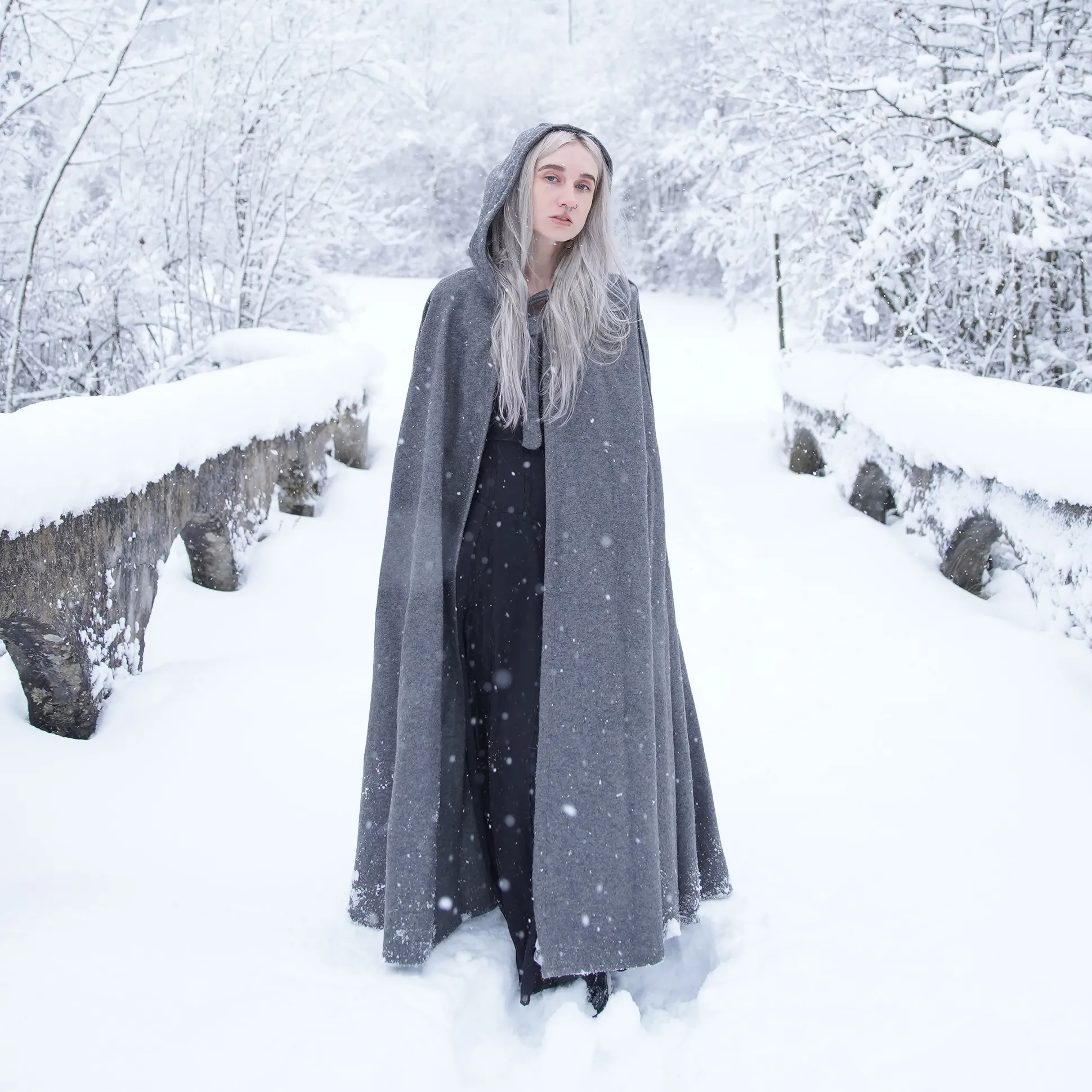 Welkom in de wereld van ridders en koninginnen! De middeleeuwse mantel Elinor in grijs is het perfecte accessoire voor iedereen die zich even in vervlogen tijden wil wanen. De mantel is gemaakt van een zware wolmix die er niet alleen superstoer uitziet, maar ook heel robuust en duurzaam is.
