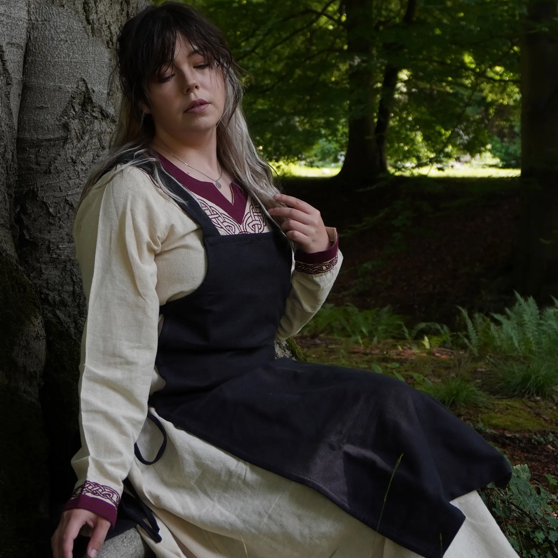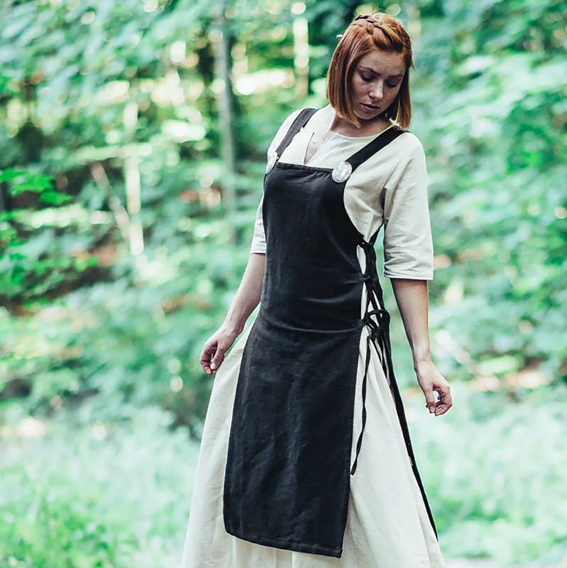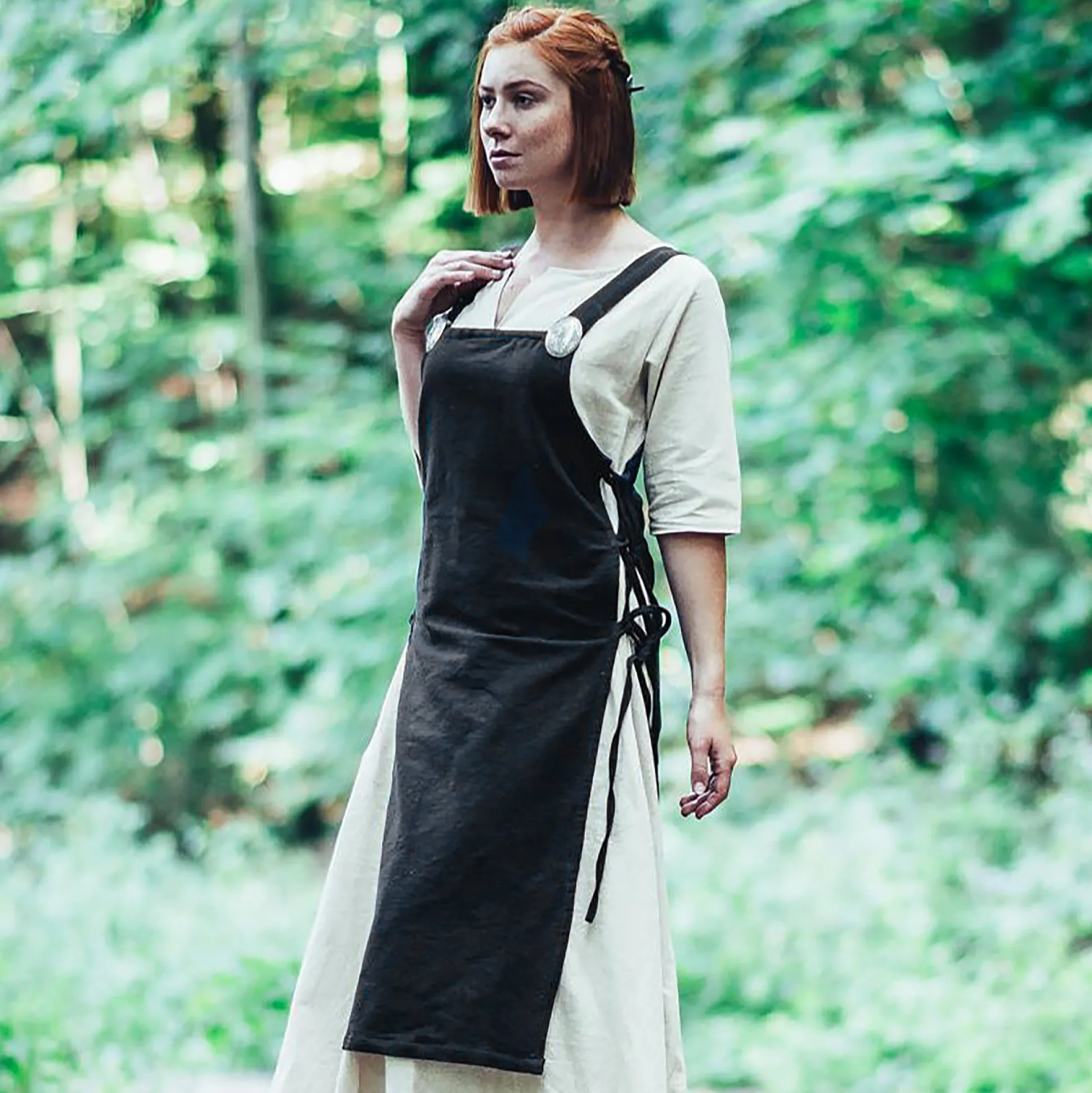 Ben je klaar om een reis terug in de tijd te maken en de gedurfde en fascinerende wereld van de Middeleeuwen te verkennen? Dan is de “Middeleeuwse Overjurk Aleiga Zwart” van Elbenwald precies wat je zoekt! Deze mouwloze overjurk voor dames geeft je de authentieke middeleeuwse flair waarnaar je op zoek bent. Met de veters aan de zijkant kun je het individueel aanpassen en het past als gegoten. Combineer het met een onderjurk om de look compleet te maken. Let op, de onderjurk, broches en riem zijn niet inbegrepen in de levering, maar maak je geen zorgen, je kunt ze apart kopen. Het duurzame materiaal en het hoge comfort zullen je bevallen. Dus, waar wacht je nog op? Duik in de wereld van de Middeleeuwen en word de heldin van je eigen verhaal!