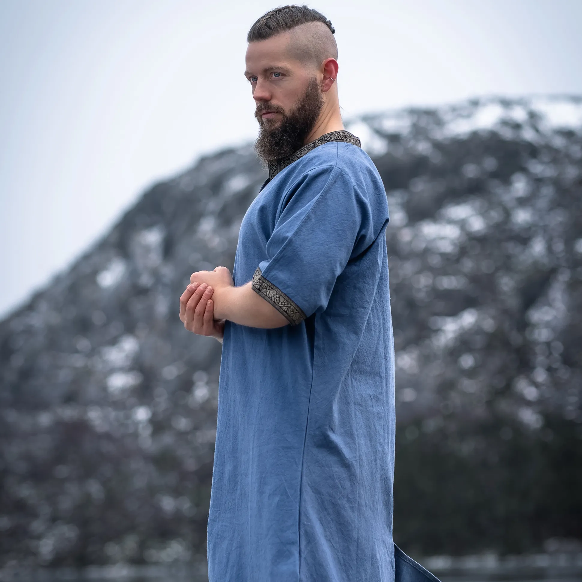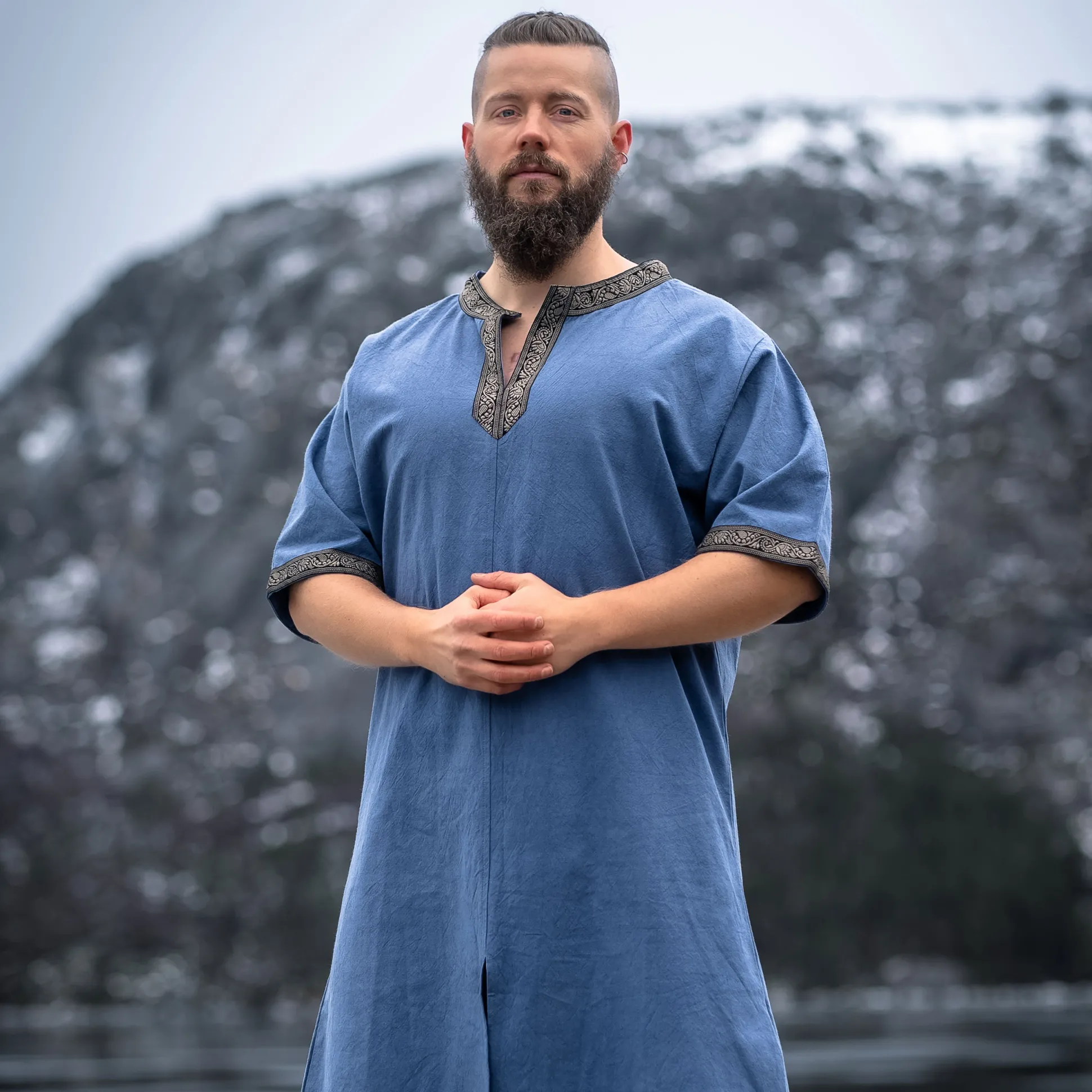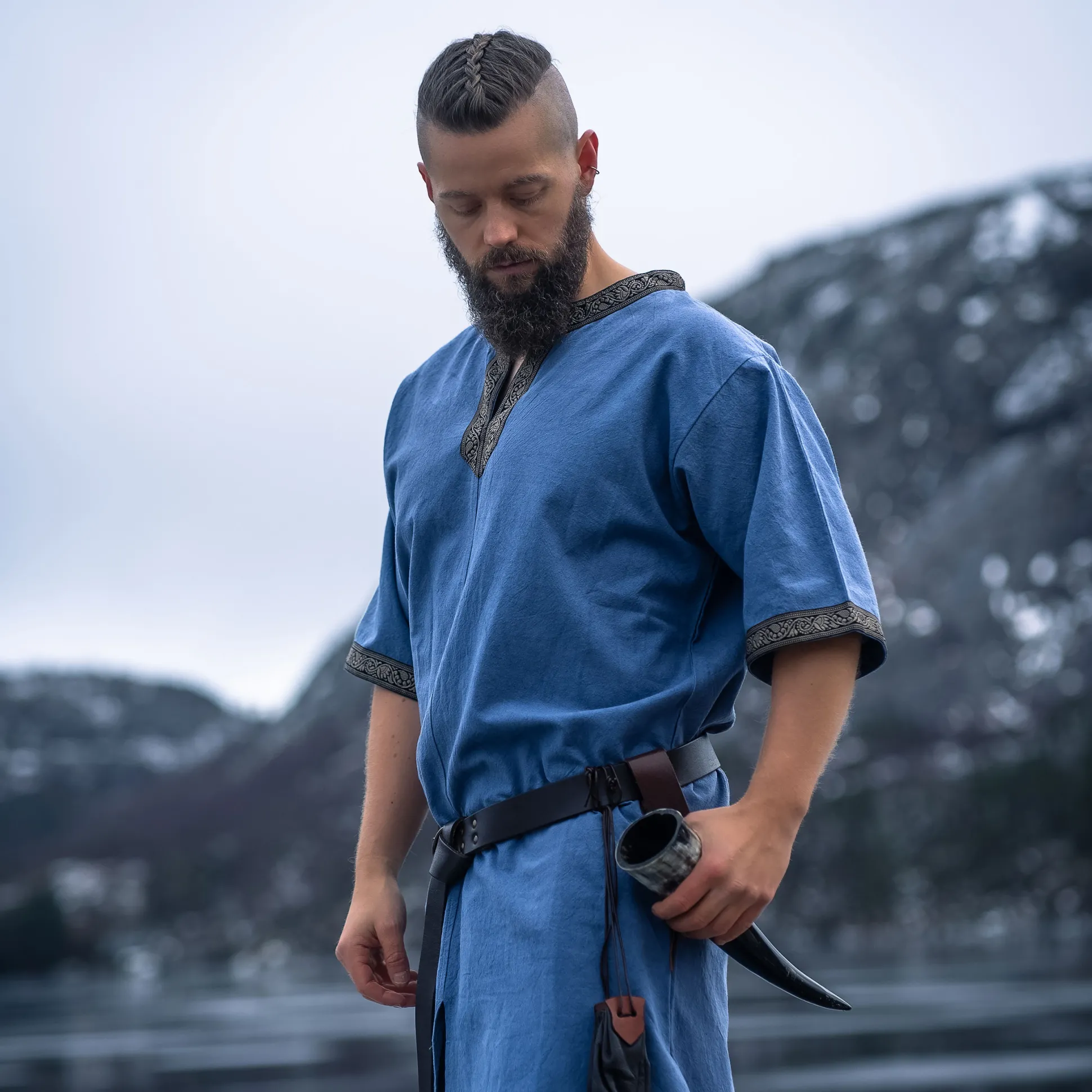 Ben je klaar om je onder te dompelen in de fascinerende wereld van de Middeleeuwen? Met onze hoogwaardige middeleeuwse korte mouwen tuniek Richard in koninklijk blauw ben je goed uitgerust! De rechte snit en korte mouwen zorgen voor optimale bewegingsvrijheid, terwijl je je stort in de drukte van de volgende middeleeuwse markt of LARP-evenement. De ronde halslijn met puntige uitloop en de decoratieve rand aan het decolleté en de mouwen geven je dat bepaalde iets en maken je een echte blikvanger. En het beste: Ondanks het hoge draagcomfort is de tuniek extreem duurzaam. Dus, waar wacht je nog op? Duik in de wereld van de Middeleeuwen en voel je als een echte ridder!