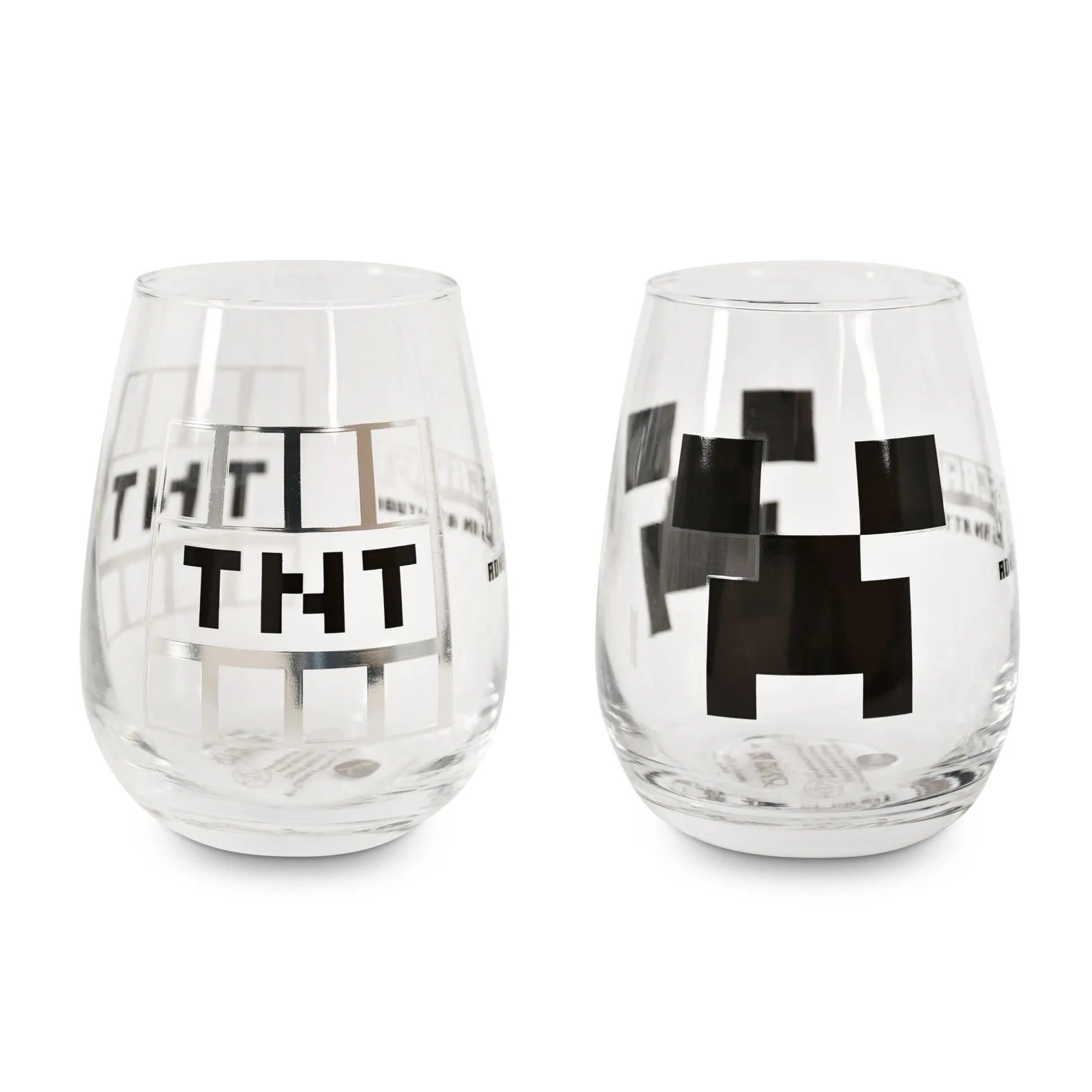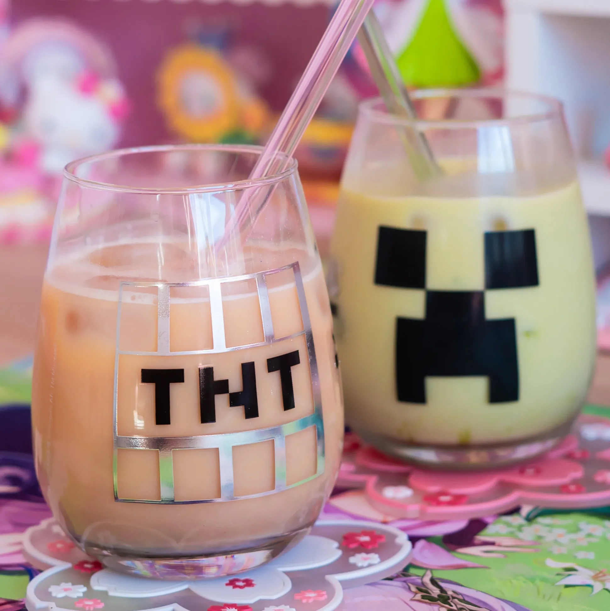 - set bevat 2 glazen met Creeper- en TNT-ontwerpen