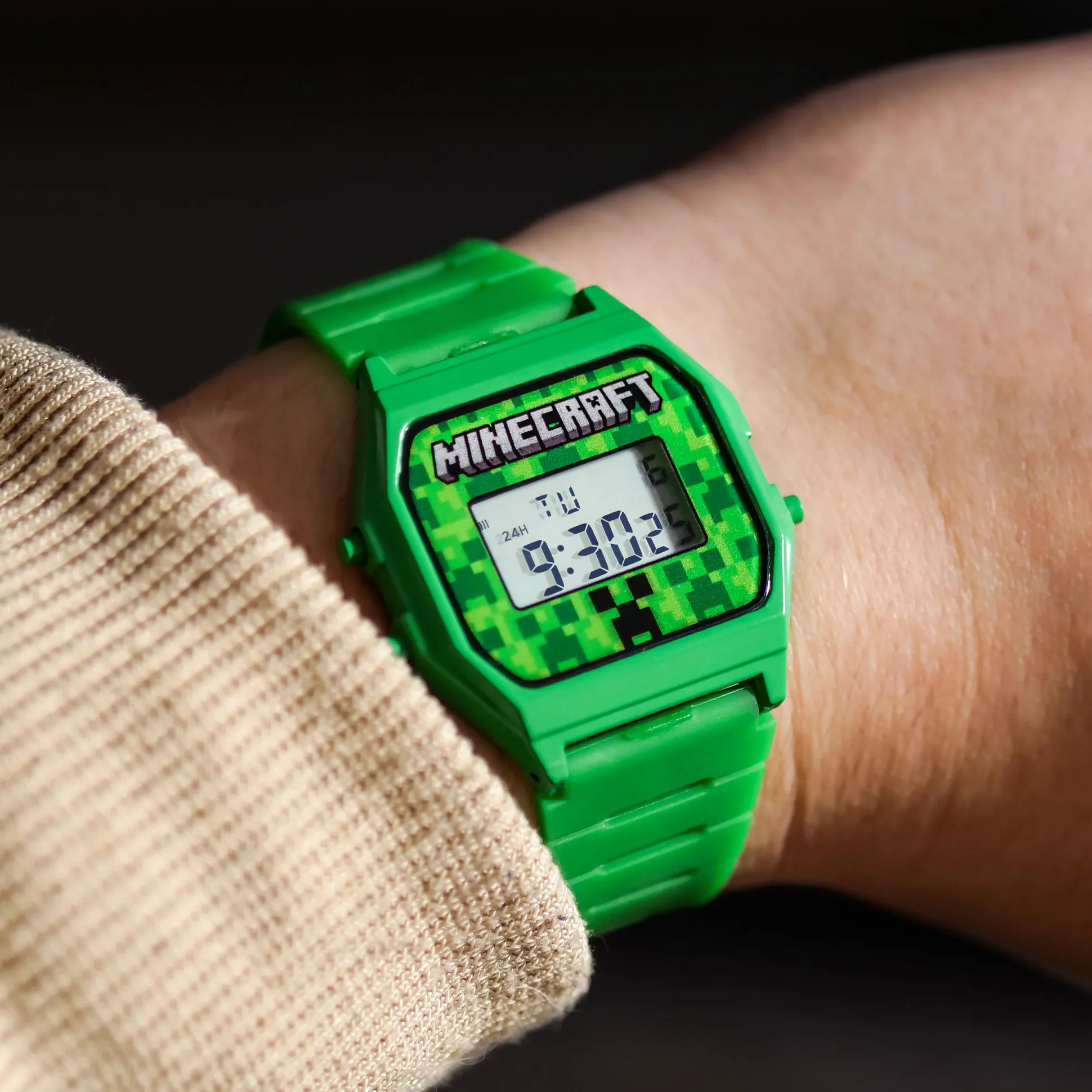 Tik-tak in plaats van ssssss-BOOM: met het Minecraft Creeper-horloge houd je de tijd in toom voordat er weer iemand ontploft. Het digitale display heeft de iconische Creeper-look en het knalgroene design laat je pols opvallen – perfect voor avonturen IRL en in het blokkerige universum.
