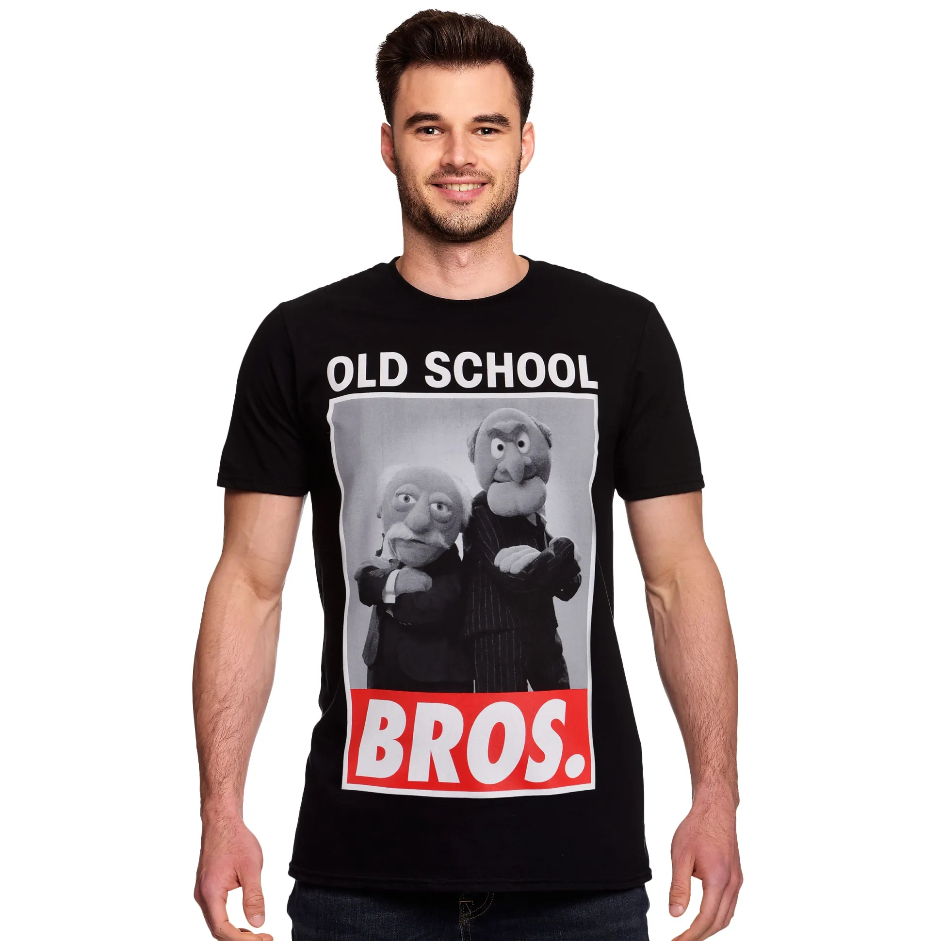 Old school? Altijd. Dit officieel gelicentieerde The Muppets T-shirt eert de enige echte Old School Bros: Waldorf & Statler — de koningen van balkoncommentaar. De grote retro frontprint knalt op diepzwart en maakt van elke entree een show. Rechte fit en ronde hals: aantrekken, oneliner droppen, buiging maken. Perfect voor iedereen die bij de koffie, op kantoor of in de bios graag met een droge grap scoort. Jouw ticket naar de balkonloge — zonder theaterkaartje.