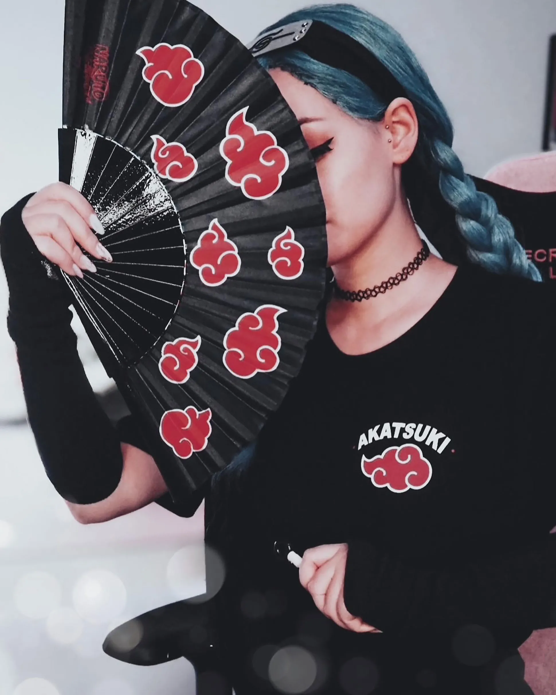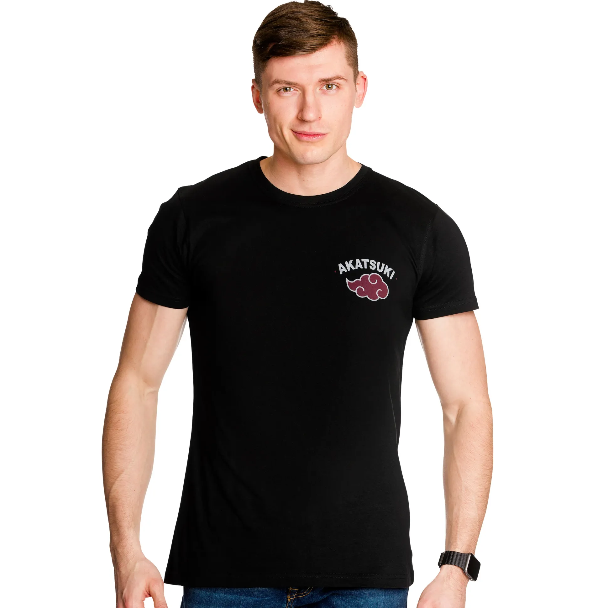 • Klein Akatsuki‑logo en tekst op de borst