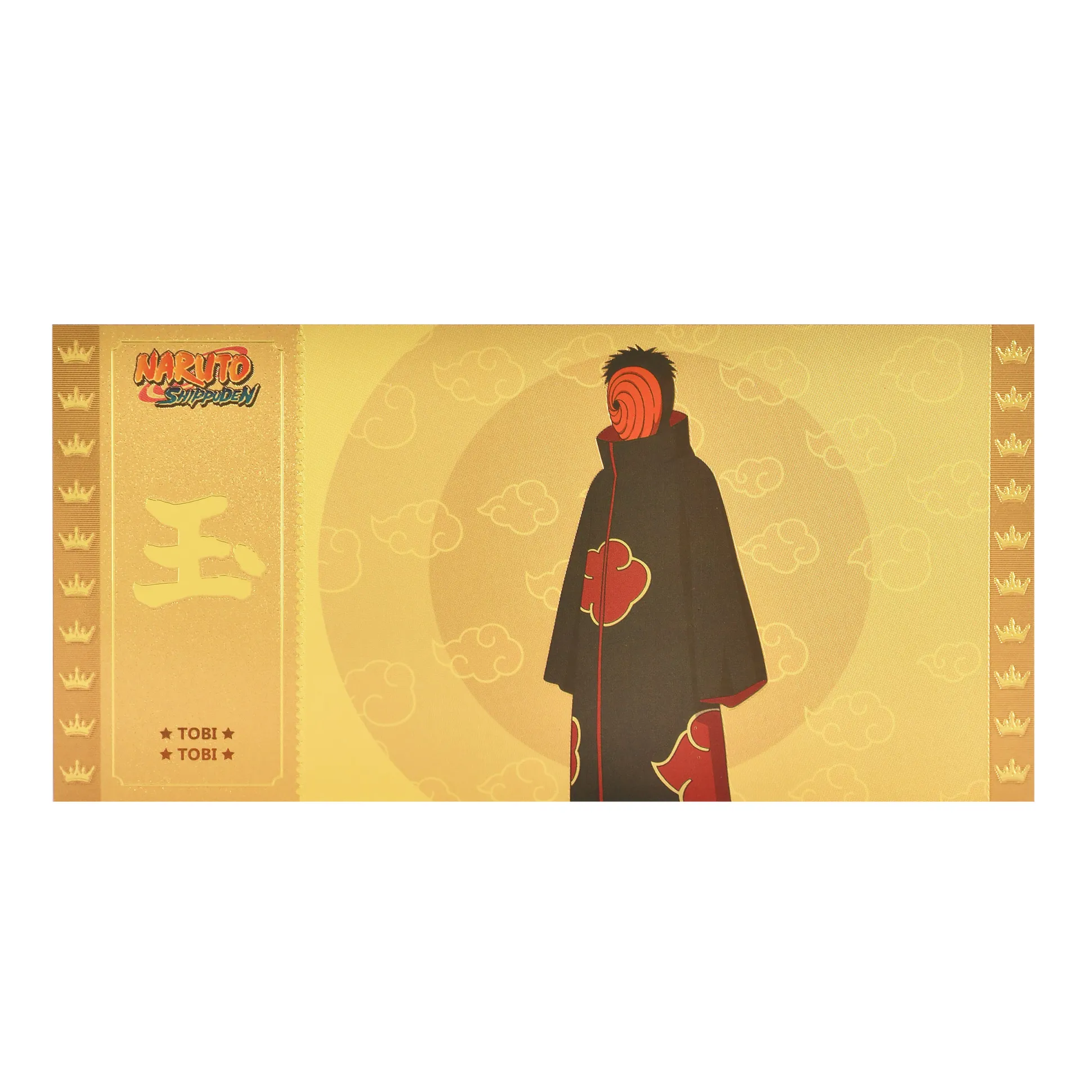 - Ontwerp: Obito Uchiha alias Tobi met verhoogde symbolen, afmetingen: 14,3 x 7,2 cm