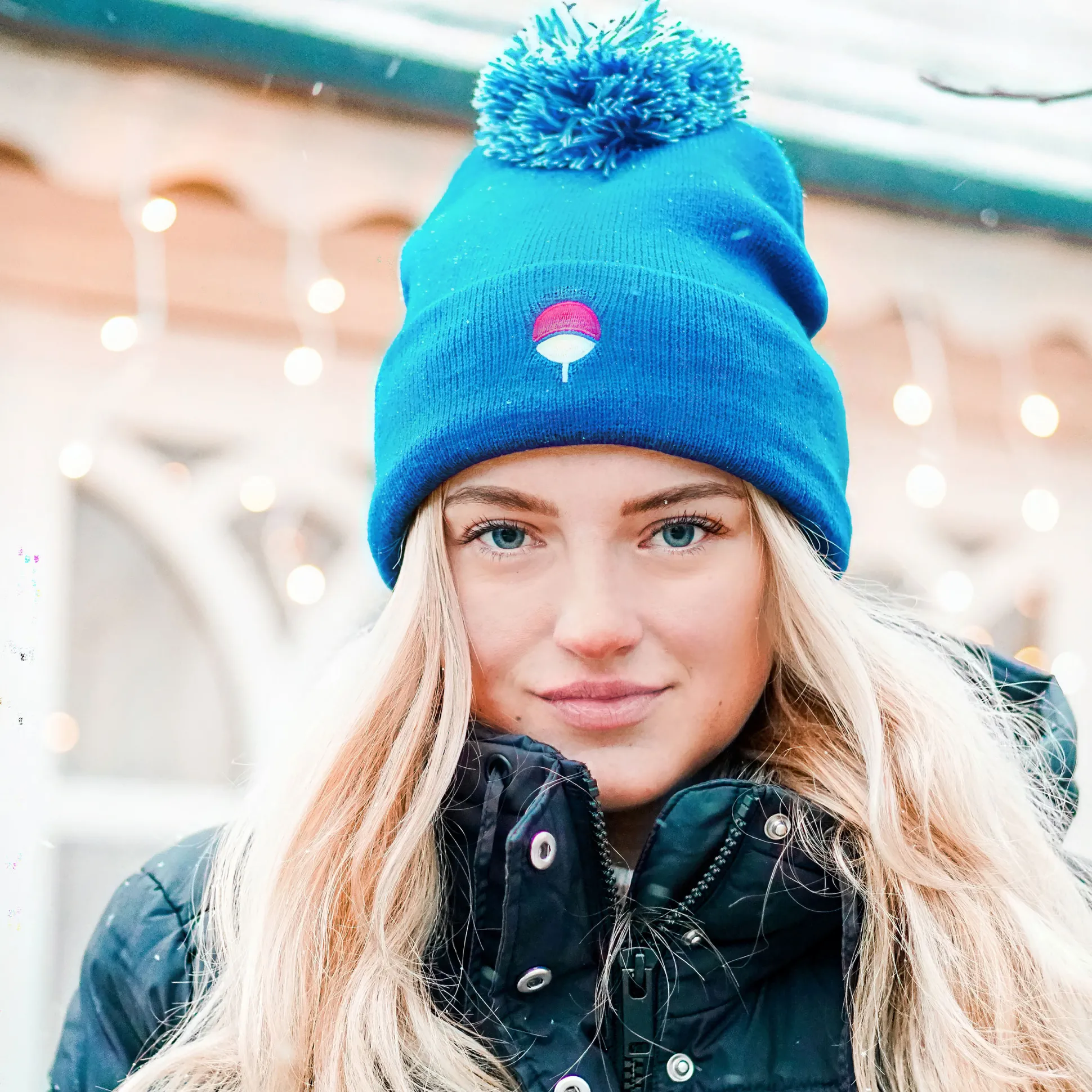 - dubbele laag, met pluizige pompon