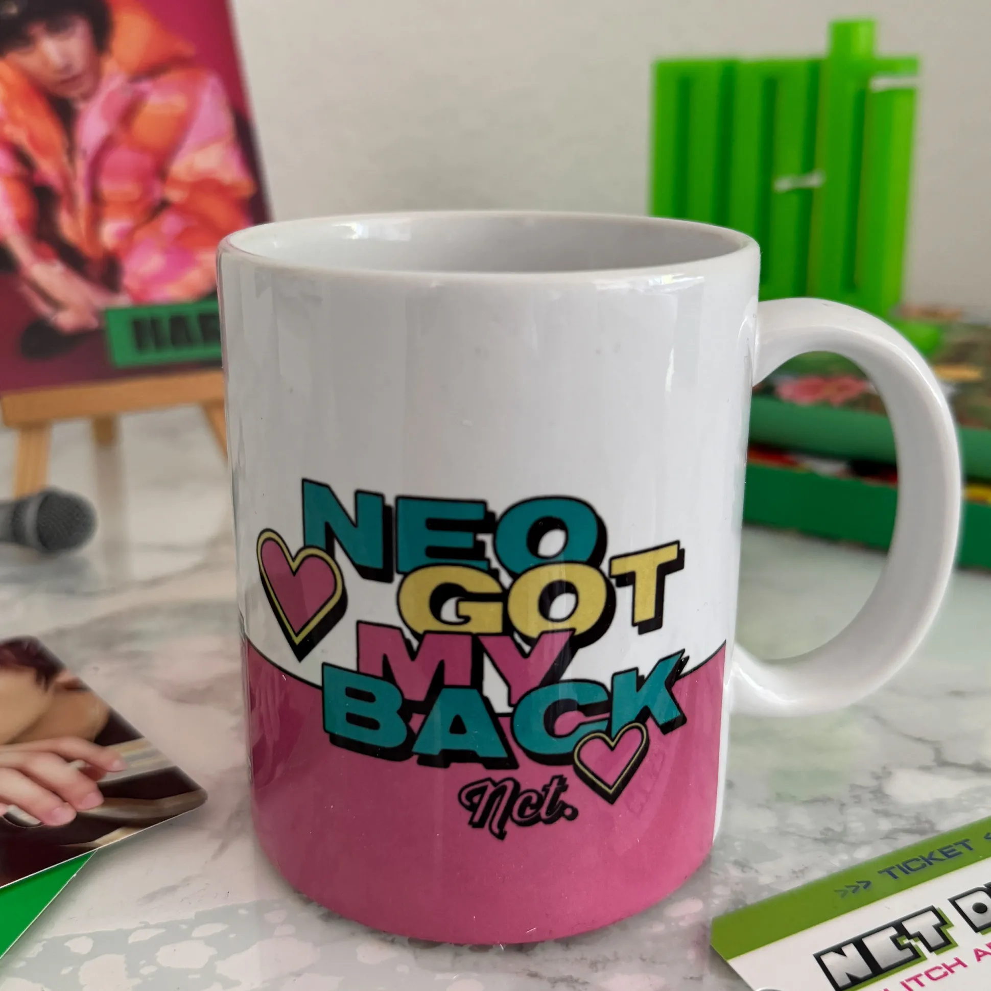 Je bureau belde: het wil meer NCT. Deze officieel gelicentieerde mok serveert sticker‑vibes van de boyband en de duidelijke “Neo Got My Back”‑tekst — logisch toch. Met 320 ml precies goed voor pre‑comeback cafeïne, late‑night streamingthee of warme choco bij varietyprogramma’s. Vaatwasser? Magnetron? Doet ‘ie allebei zonder drama, zodat jij je kunt focussen op optredens die je bias doen wankelen in plaats van op afwassen. Voor kantoor, studeerplek of je photocard‑altaar: deze mok heeft jouw back. Neo‑style.