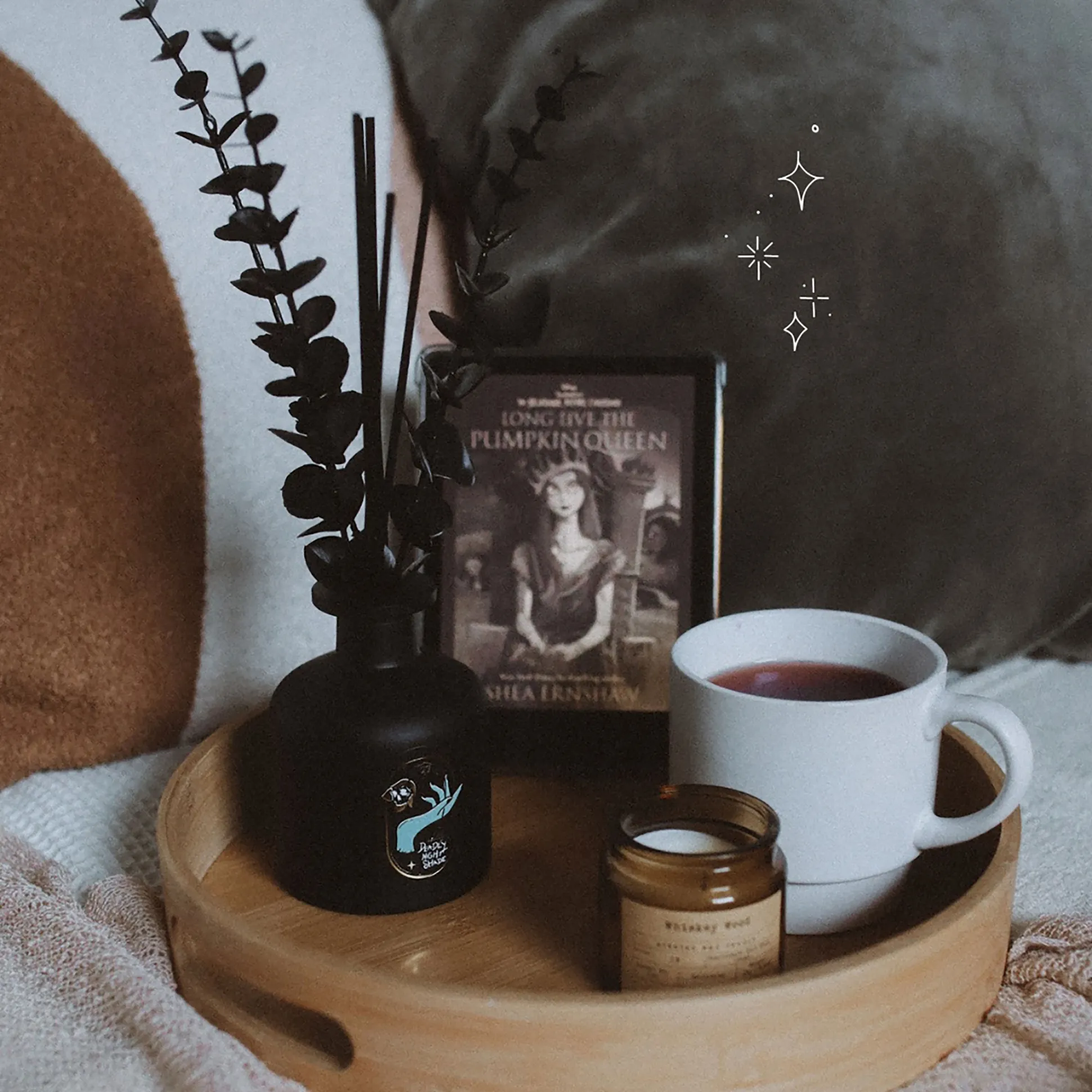 De matte vaas heeft het iconische ‘Deadly Nightshade’-label en wordt geleverd met kunstzinnige takken en zwarte rietstokjes. Voeg gewoon je favoriete etherische olie toe (niet inbegrepen), leun achterover en laat de spooky-chic vibes door Halloween Town en daarbuiten zweven.