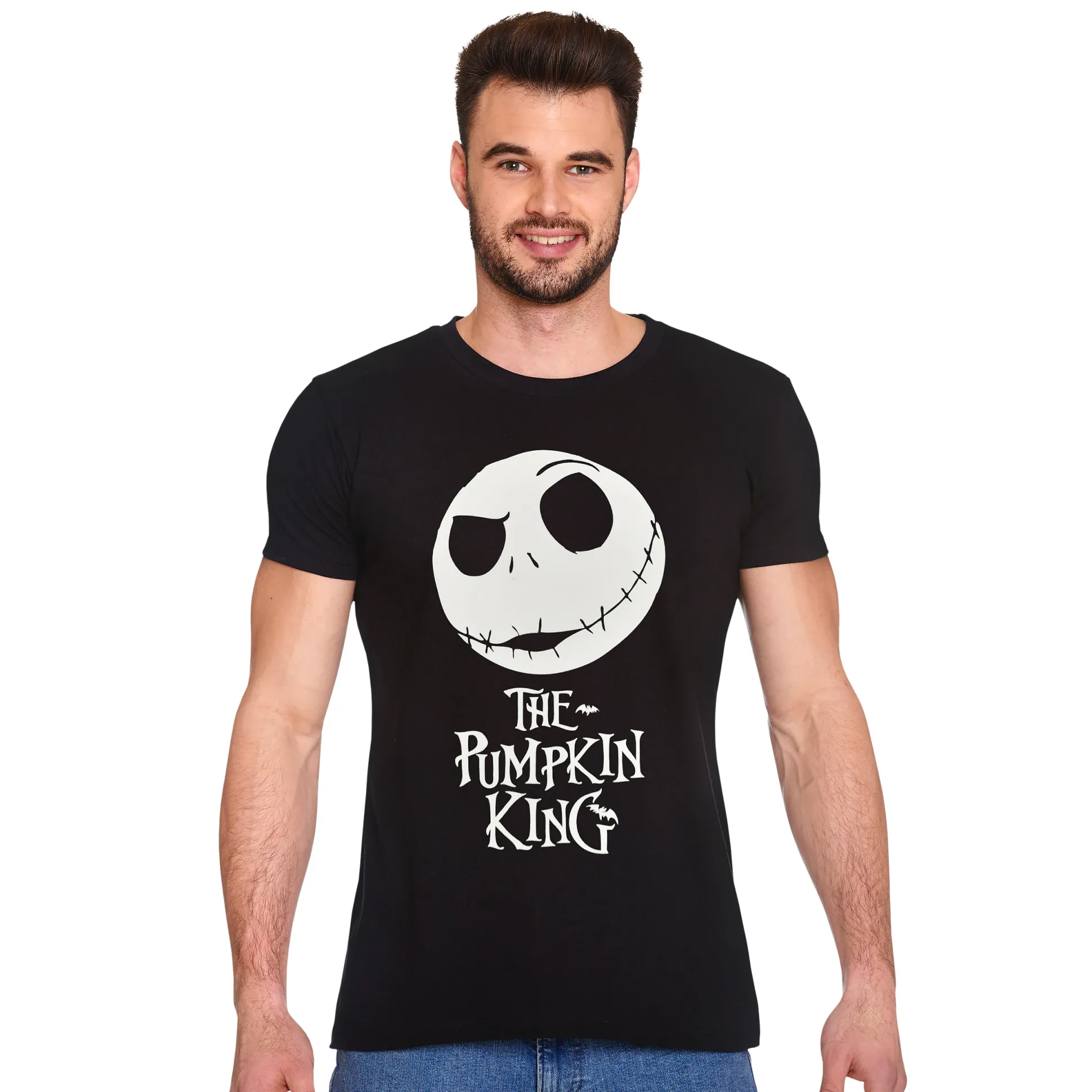 Klaar om de ultieme Halloween-look te rocken? Met het officieel gelicenseerde “Nightmare Before Christmas – The Pumpkin King” T-shirt ben je niet alleen een fan, maar de koning (of koningin) van griezelige coolheid! De grote Jack Skellington-print op de voorkant maakt je de ster van elke Halloween-party, filmavond of gewoon een relaxte dag thuis. De rechte pasvorm en comfortabele ronde hals zorgen ervoor dat je je net zo fijn voelt als Jack in zijn grafkelder. Laat je liefde voor “Nightmare Before Christmas” zien en laat de wereld weten dat jij stijl hebt – de duistere, coole stijl. Perfect voor fans die vinden dat Halloween het hele jaar door gevierd moet worden!