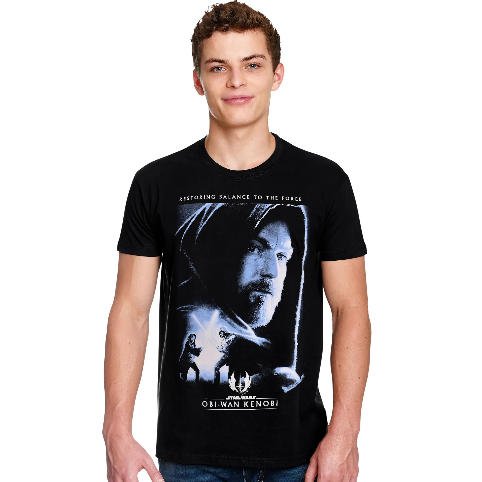 Breng balans in je kledingkast: Dit officieel gelicentieerde Star Wars T-shirt viert Obi-Wan Kenobi en zijn missie om de Kracht weer in balans te brengen. Een groot poster-ontwerp op de voorkant met Obi-Wan — inclusief “Restoring Balance to the Force” — knalt op diepzwart. De rechte pasvorm en de klassieke ronde hals zorgen voor dagelijks draagcomfort. Officiële merch, geen goedkope streken van de duistere kant. Of je nu aan het bingen bent of met de afstandsbediening duelleert: dit T-shirt is jouw hogere positie.