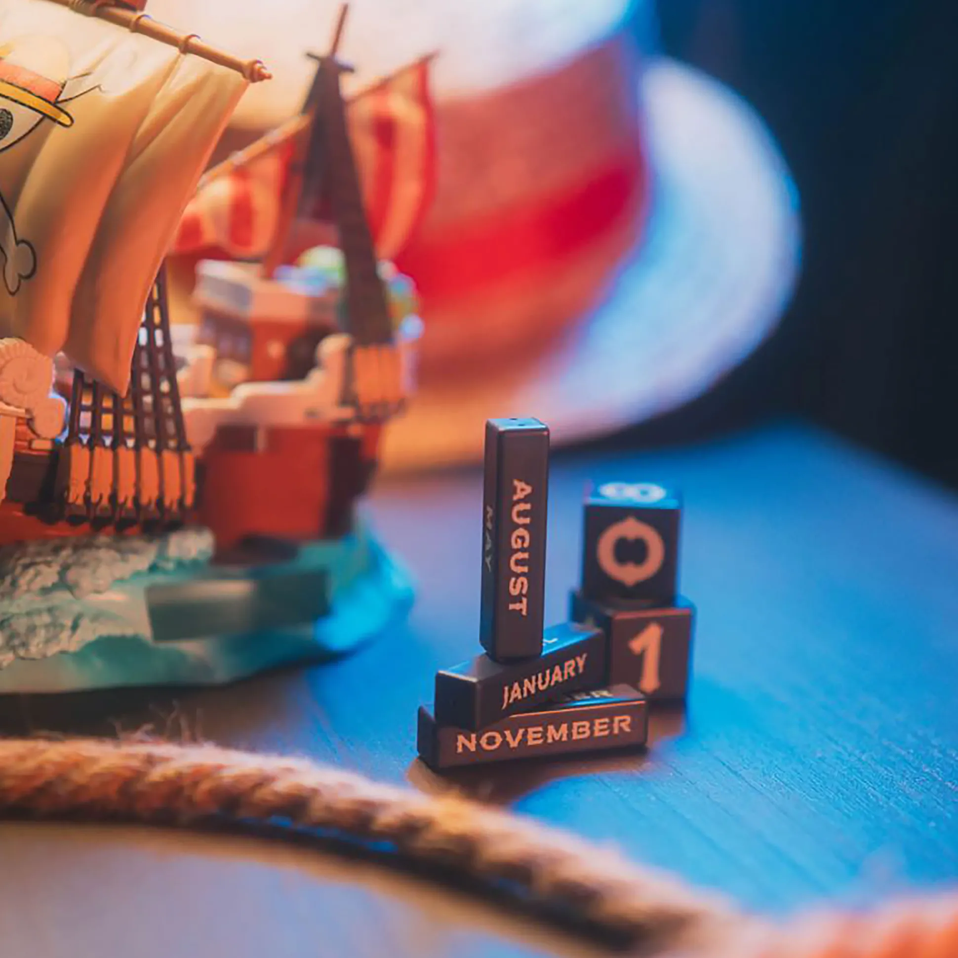Met de verwisselbare onderdelen voor dagen en maanden stel je de datum zo in en gebruik je hem jaar na jaar. Geen afgescheurde blaadjes, alleen een heldere koers. Het perfecte cadeau voor One Piece-fans en voor iedereen die zijn plank of kantoor een snufje piratenflair wil geven.