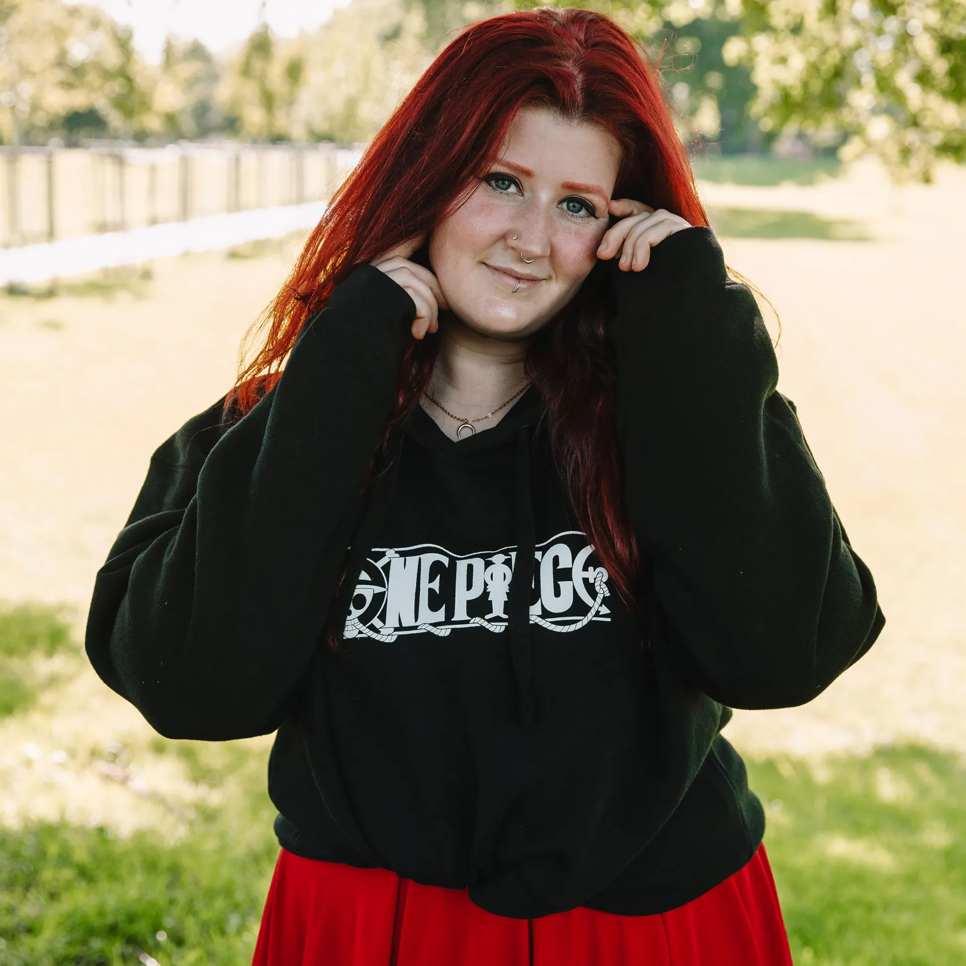 Gemaakt voor dagelijkse quests: stevige boorden, een verstelbare capuchon met trekkoord en een ruime kangoeroezak voor je schatten (of snacks). De stof is warm en zacht met een geruwde binnenkant, helemaal in klassiek zwart — perfect voor binges, meet-ups of onvoorspelbaar Grand Line‑weer.