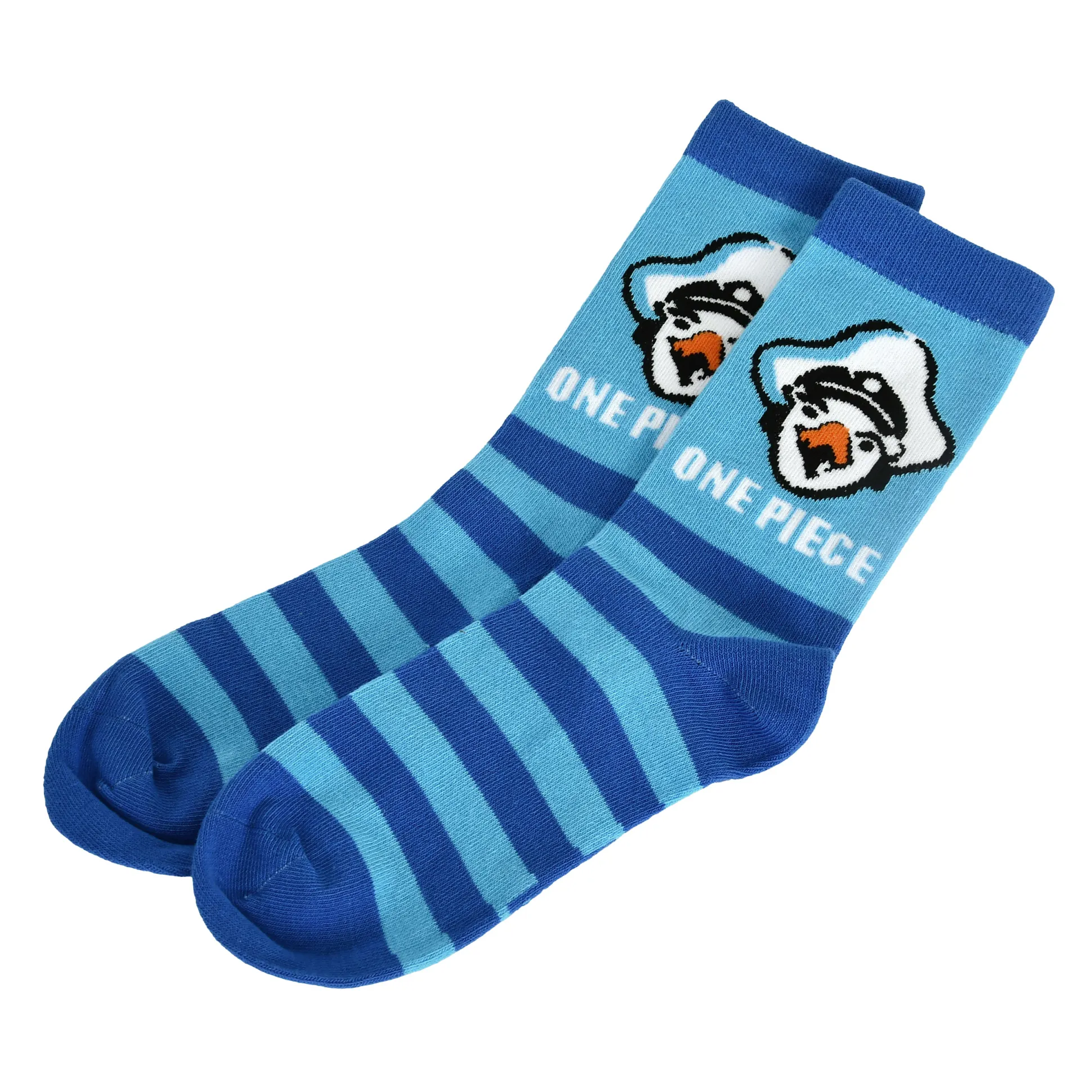 Ankers klaar? Deze officieel gelicentieerde One Piece sokken brengen zeebries en matrozenstijl naar je voeten; het blauwe design met matrozenmotief past bij elke outfit, of je nu op de bank chillt of koers zet naar je volgende avontuur. Dankzij de stevige boorden blijven ze waar ze horen, zelfs als de zee ruig wordt — één paar, maximale fanfactor en het perfecte cadeau voor One Piece-fans (inclusief jijzelf).