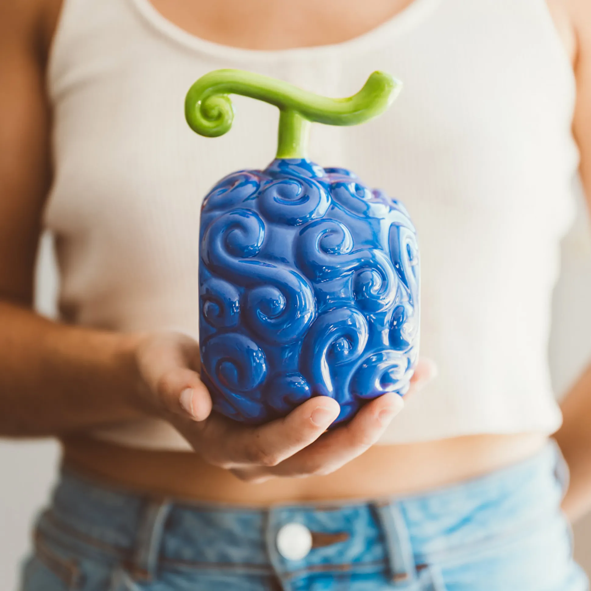 Rek je ochtend zoals Luffy met de Gomu Gomu 3D mok uit de One Piece Netflix‑serie. Gevormd als de Gomu Gomu no Mi (Duivelsvrucht), in fel blauw‑groen. Inhoud 500 ml — een portie voor een kapitein. Met de inscriptie “I’m gonna be king of the pirates” — elke slok is een gelofte. Officieel gelicenseerd. Let op: niet geschikt voor magnetron of vaatwasser — behandel ’m als een Grand Line‑schat. Perfect voor je thuiswerkplek, om te showen op de plank of als cadeau voor je Straw Hat‑crew.