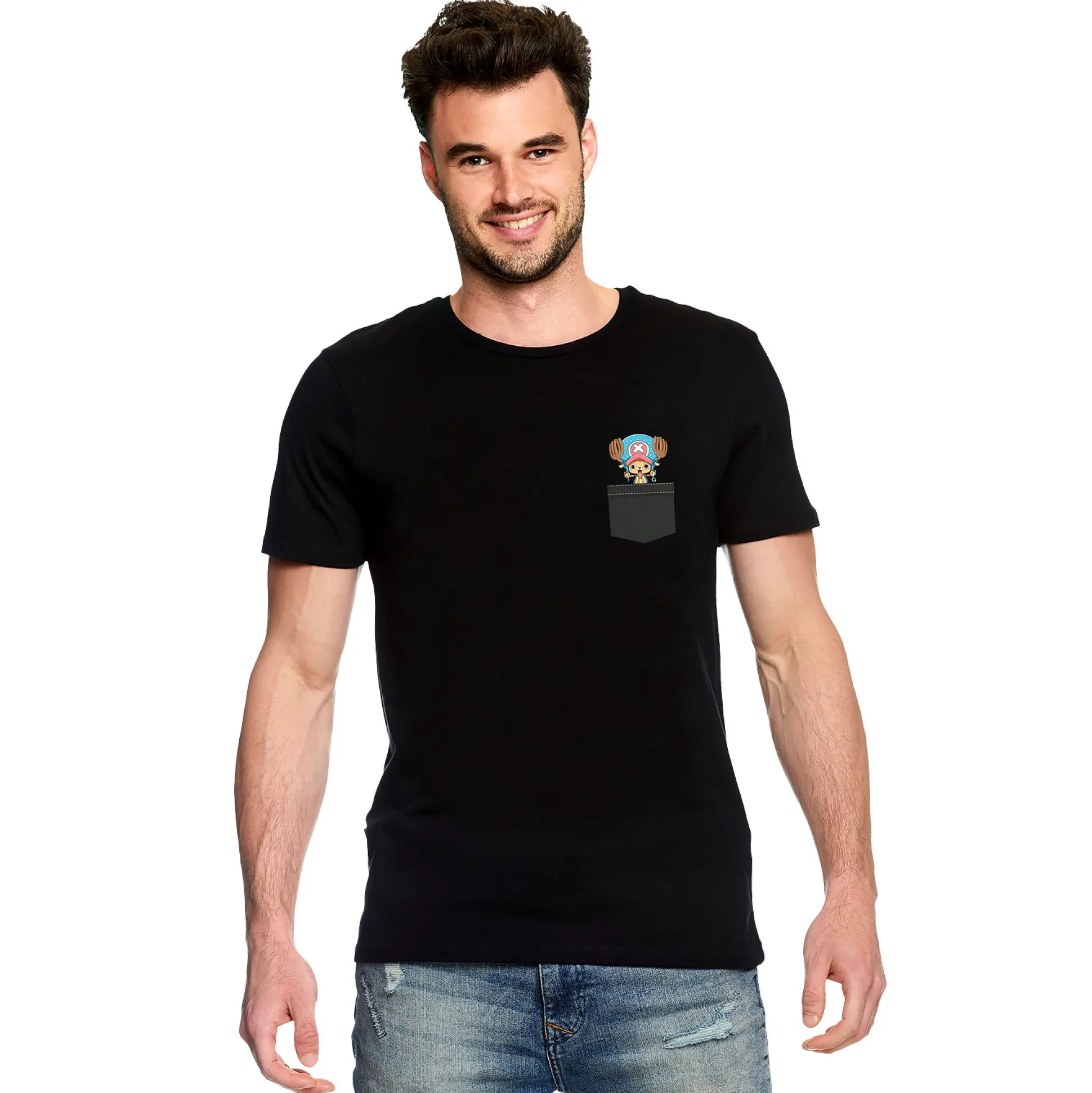 Chopper-fans, verenig je! Met dit officieel gelicentieerde One Piece T-shirt draag je Tony Chopper altijd dichtbij – precies op je borstzakje. De schattigste dokter van de Straw Hat Crew straalt op dit diepzwarte shirt, zo zoet dat zelfs Zoro even stopt met trainen. Recht model, ronde hals, pure stijl: geen bemanningslid blijft achter. Trek ‘m snel aan en klaar voor jouw volgende avontuur – op zee of gewoon op de bank!