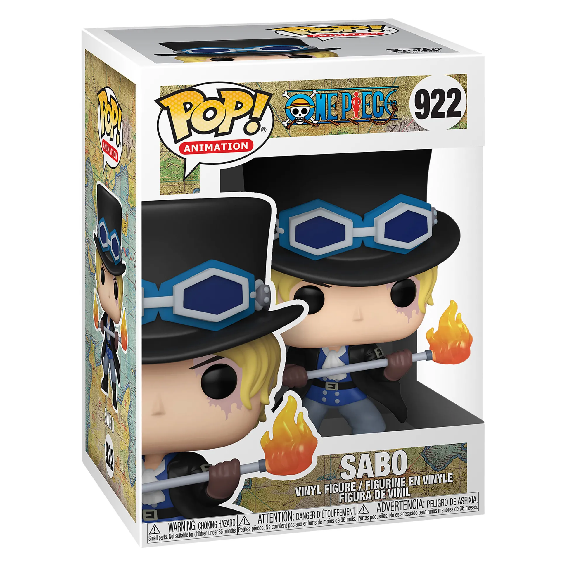 De 12 cm hoge replica van Sabo uit One Piece is gemaakt van plastic, heeft een beweegbaar hoofd en is verder ‘uit één stuk’. Het wordt geleverd in een ontworpen vensterdoos en kan dus direct worden weggegeven.
