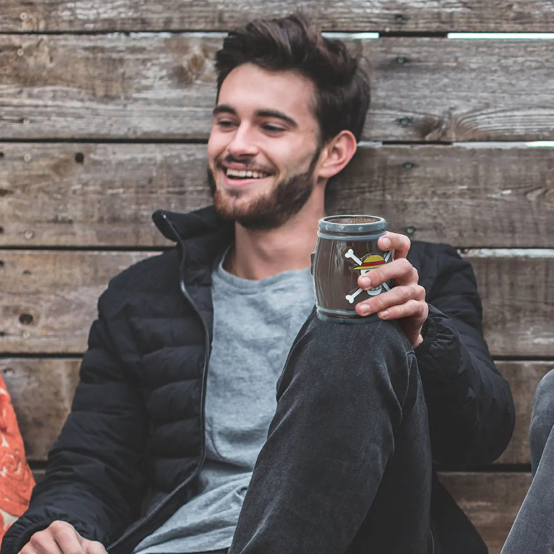 Anker los, mok omhoog! Deze One Piece 3D-ton-mok maakt van elke slok een klein avontuur. Met reliëfdetails, de Jolly Roger van de Straw Hat Pirates en het One Piece-anime-logo laat hij zien bij welke crew je hoort. Inhoud 350 ml voor koffie, thee of (virtuele) grog; afmetingen: 12 x 10,3 x 7,5 cm. Niet geschikt voor magnetron of vaatwasser — handwas aanbevolen. In bruin en grijs en officieel gelicenseerd — perfect voor bureau, bank of je volgende One Piece-marathon.